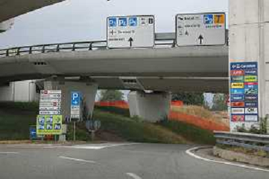 TVRCOR Traffico e cartelli all'ingresso dell'Aeroporto di Milano Malpensa (Ferno - VA) 02-08-2025 nella foto ingresso parcheggio Milan Airports Parking Holiday P4 FOTO ROBERTA CORRADIN-AG ALDO LIVERANI SAS