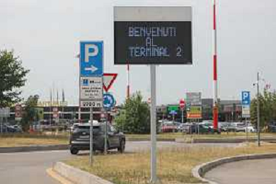 TVRCOR Traffico e cartelli all'ingresso dell'Aeroporto di Milano Malpensa (Ferno - VA) 02-08-2025 nella foto ZTC attiva transito 15 minuti parcheggi breve sosta FOTO ROBERTA CORRADIN-AG ALDO LIVERANI SAS