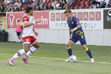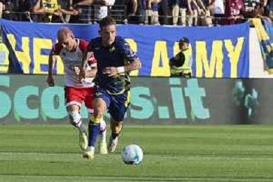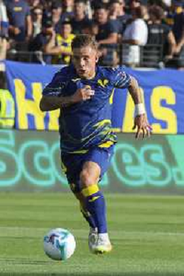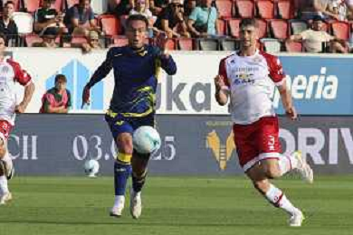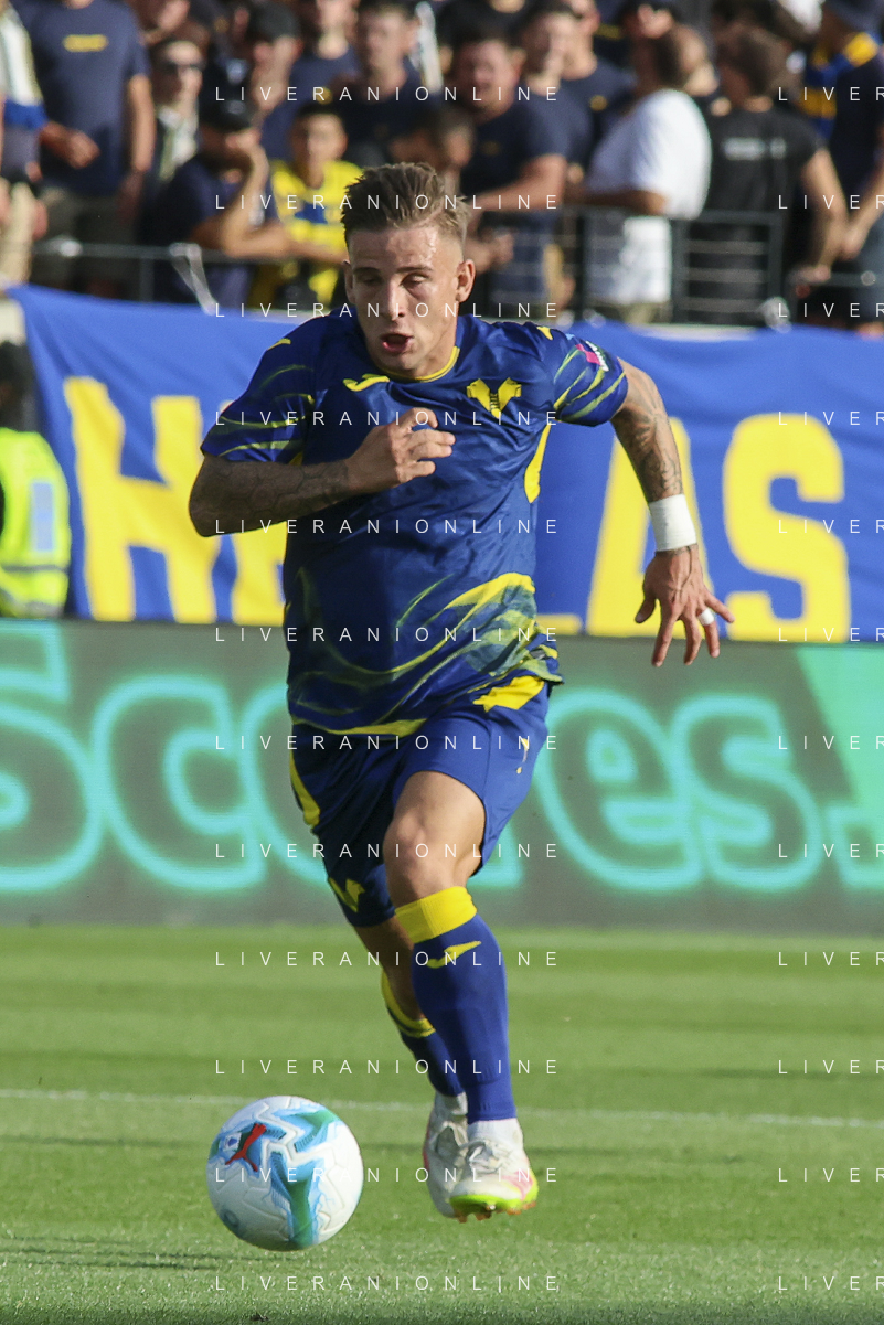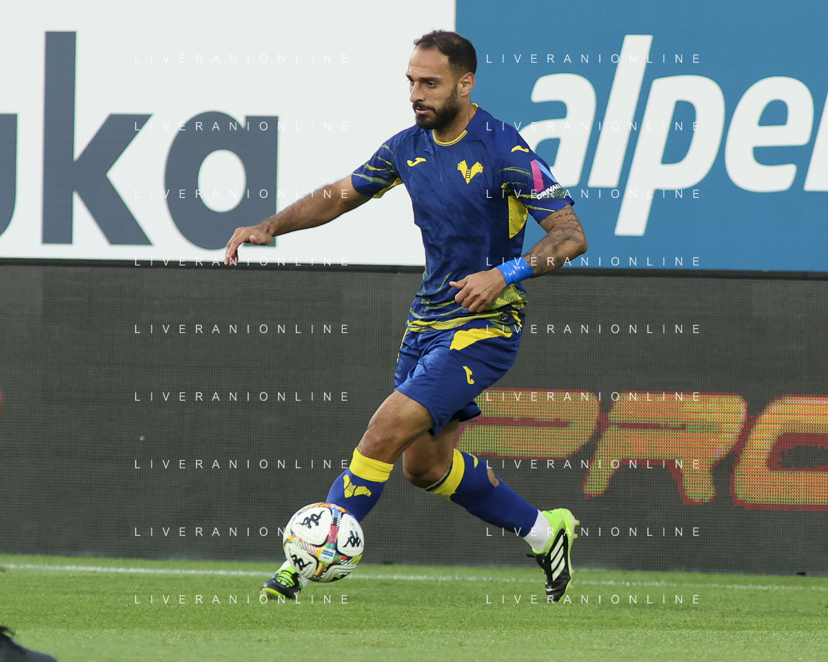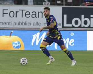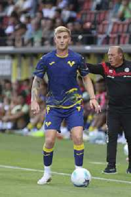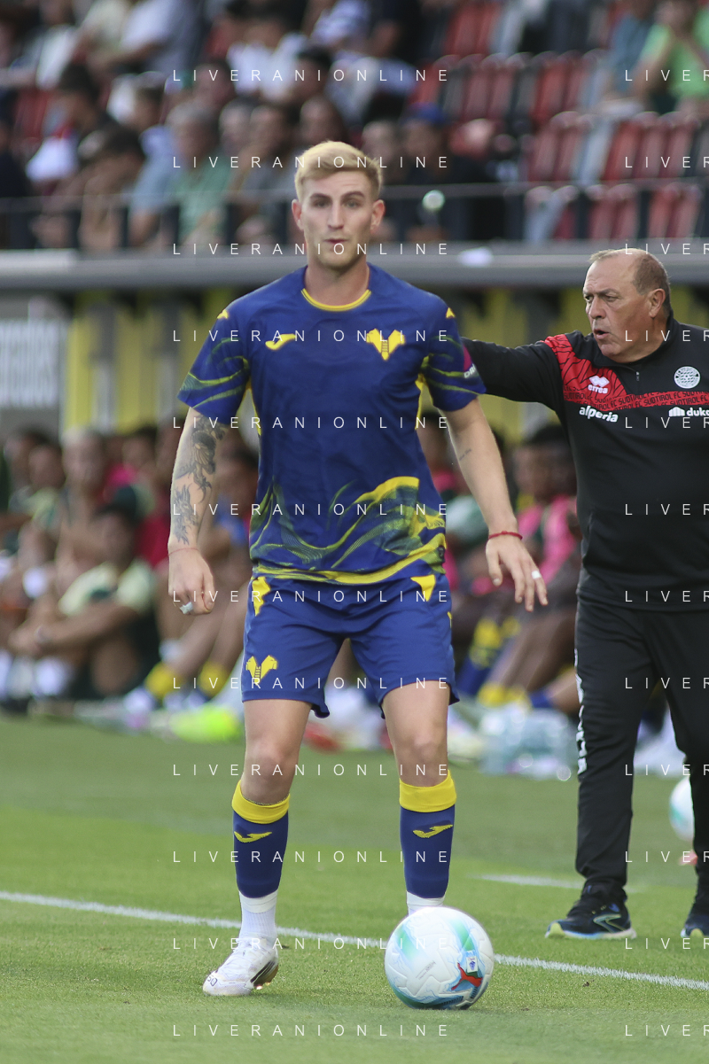 Jesus Santiago Perez of Hellas Verona FC play the ball during SudTirol vs Hellas Verona FC, 4° Test Match, at Druso stadium in Bolzano (BZ), on August 03, 2025. (Photo by Davide Casentini) AG ALDO LIVERANI SAS