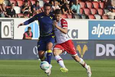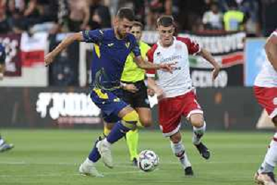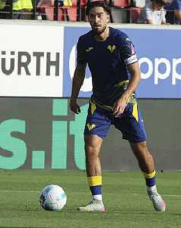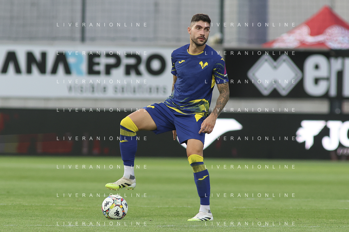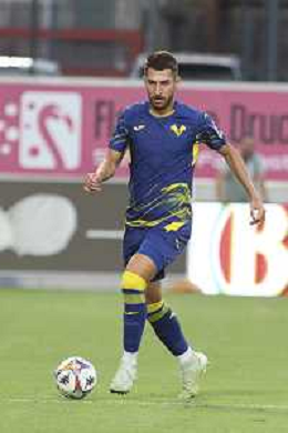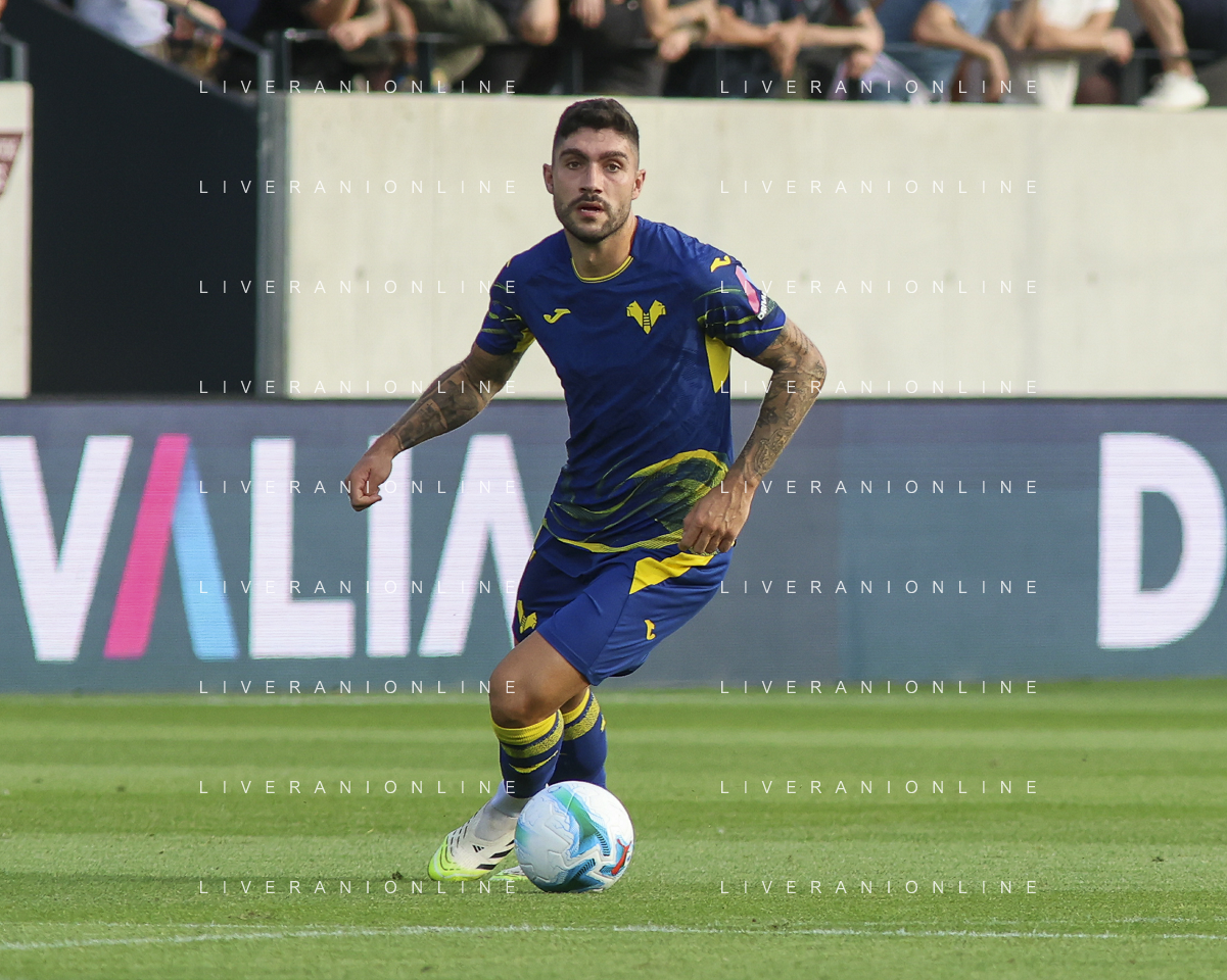 Grigoris Kastanos of Hellas Verona FC play the ball during SudTirol vs Hellas Verona FC, 4° Test Match, at Druso stadium in Bolzano (BZ), on August 03, 2025. (Photo by Davide Casentini) AG ALDO LIVERANI SAS