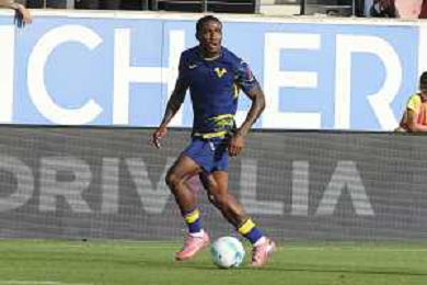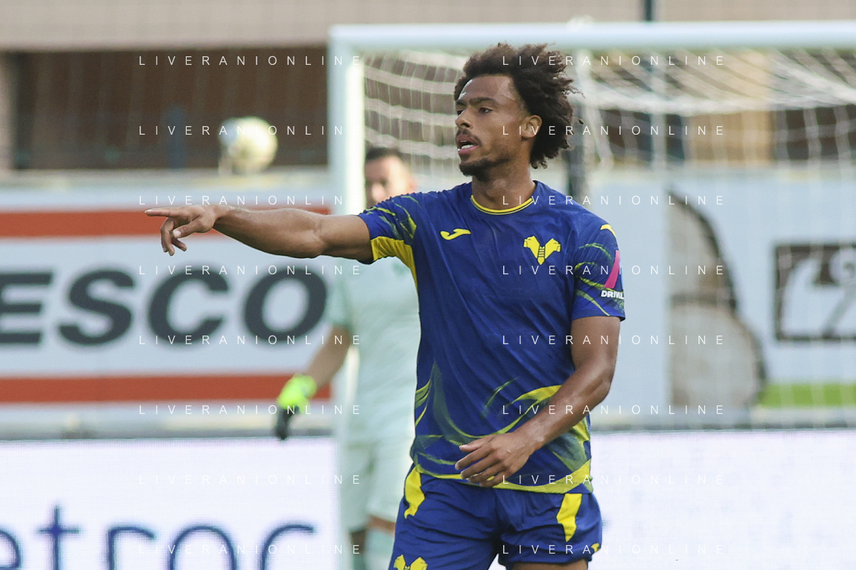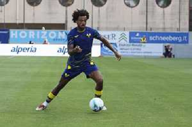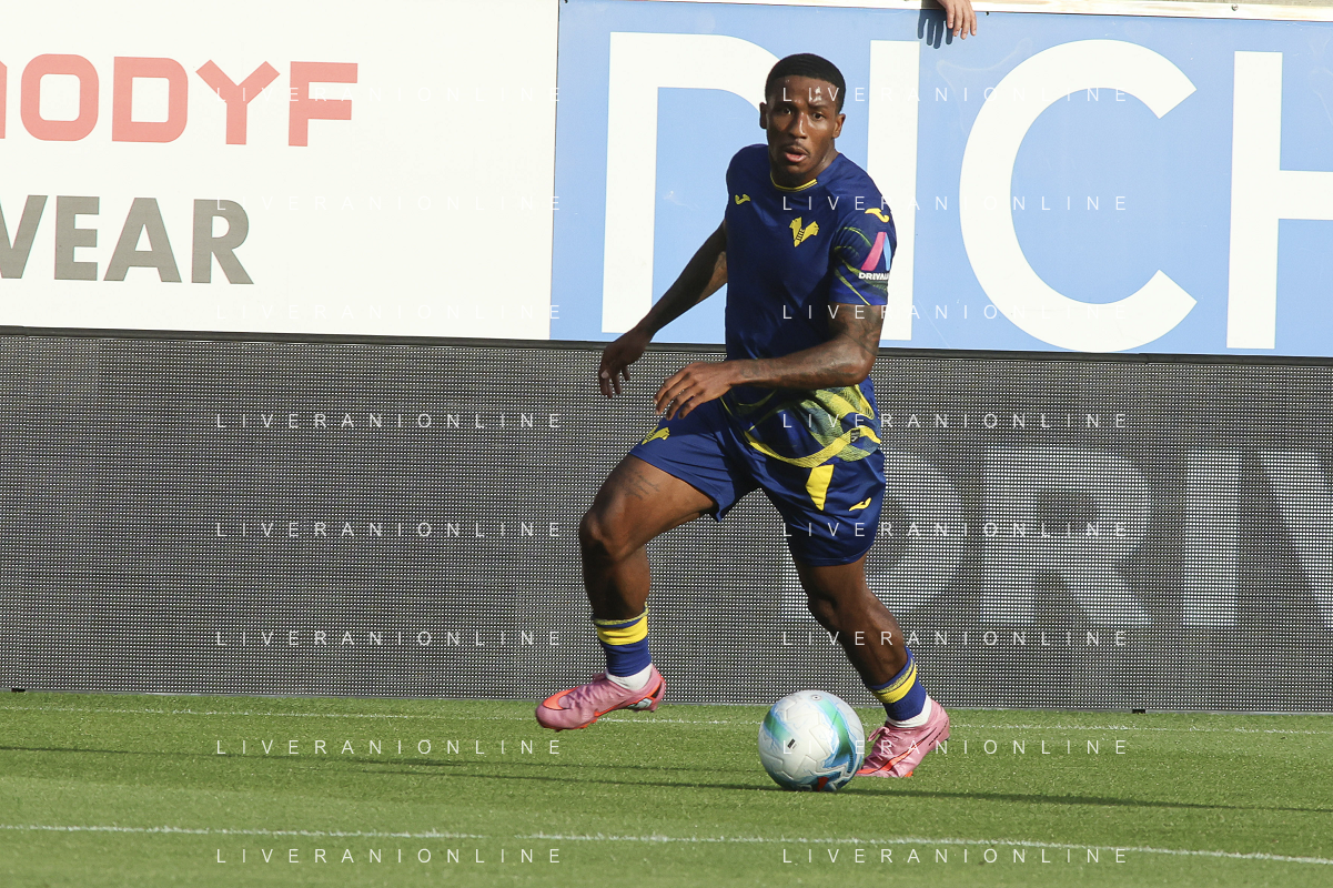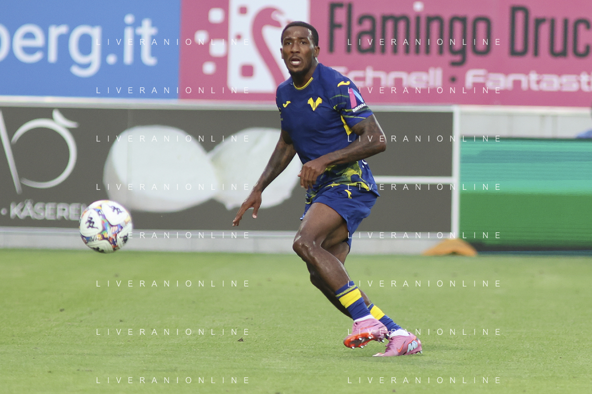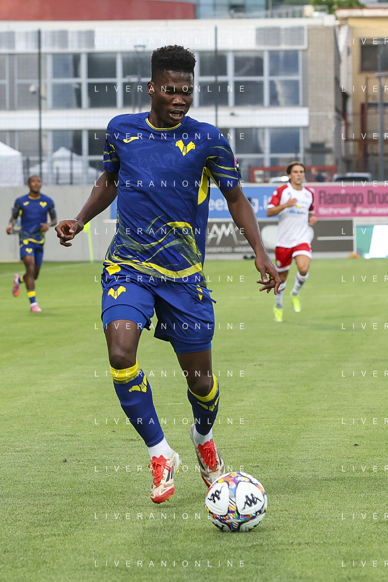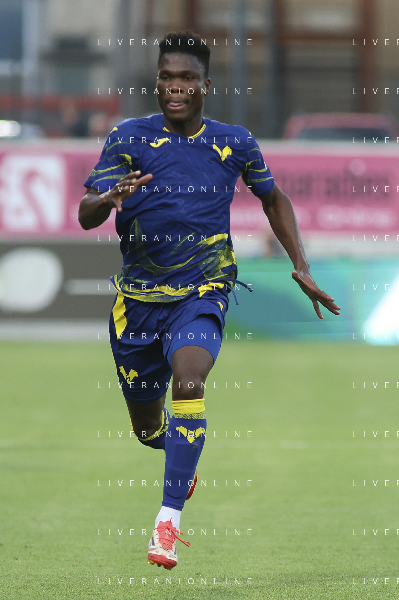 Junior Ajayi of Hellas Verona FC during SudTirol vs Hellas Verona FC, 4° Test Match, at Druso stadium in Bolzano (BZ), on August 03, 2025. (Photo by Davide Casentini) AG ALDO LIVERANI SAS