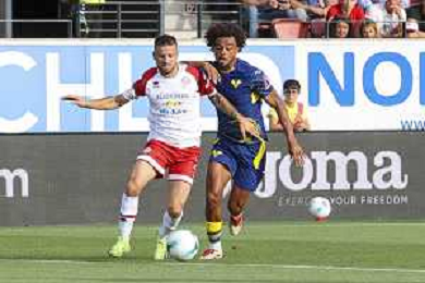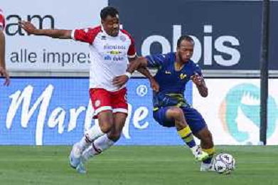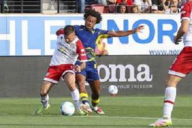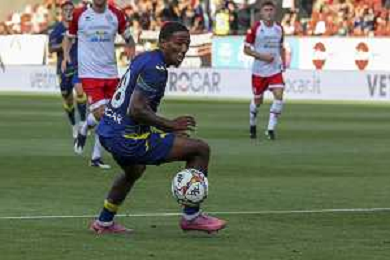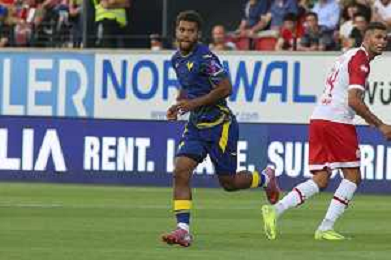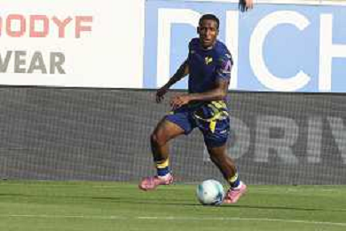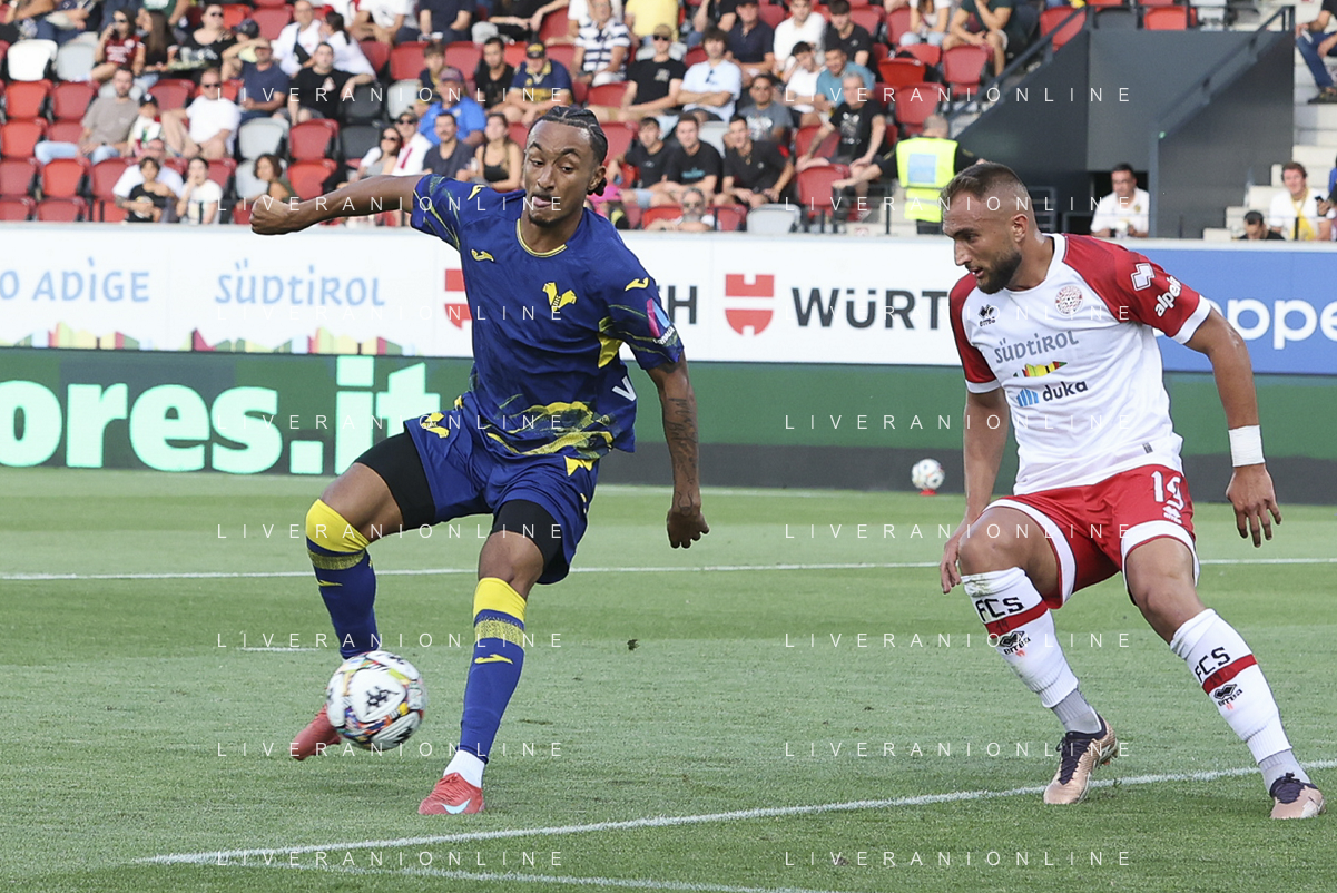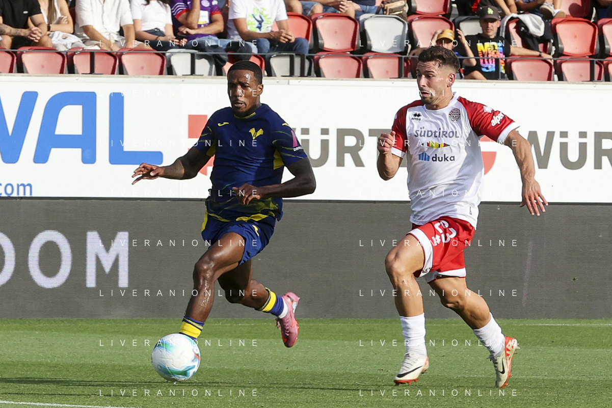 Dailon Rocha Livramento of Hellas Verona play the ball FCduring SudTirol vs Hellas Verona FC, 4° Test Match, at Druso stadium in Bolzano (BZ), on August 03, 2025. (Photo by Davide Casentini) AG ALDO LIVERANI SAS