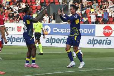 Santana do Nascimiento Giovane of Hellas Verona FC celebrates after scoring goal during SudTirol vs Hellas Verona FC, 4° Test Match, at Druso stadium in Bolzano (BZ), on August 03, 2025. (Photo by Davide Casentini) AG ALDO LIVERANI SAS