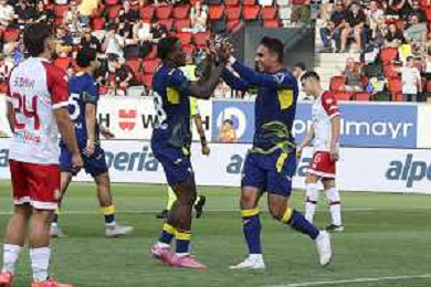 Daniele Casiraghi of FC Sudtirol celebrates after scoring goal during SudTirol vs Hellas Verona FC, 4° Test Match, at Druso stadium in Bolzano (BZ), on August 03, 2025. (Photo by Davide Casentini) AG ALDO LIVERANI SAS