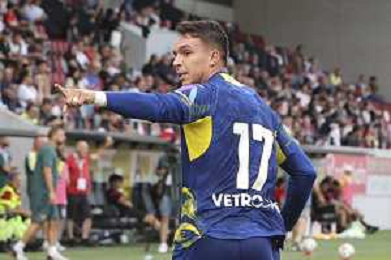 Antoine Bernède of Hellas Verona FC during SudTirol vs Hellas Verona FC, 4° Test Match, at Druso stadium in Bolzano (BZ), on August 03, 2025. (Photo by Davide Casentini) AG ALDO LIVERANI SAS
