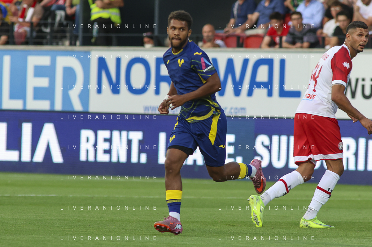 Mathis Lambourde of Hellas Verona FC during SudTirol vs Hellas Verona FC, 4° Test Match, at Druso stadium in Bolzano (BZ), on August 03, 2025. (Photo by Davide Casentini) AG ALDO LIVERANI SAS