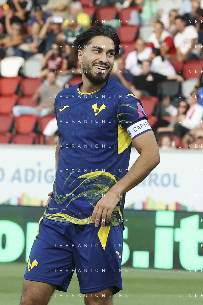 Suat Serdar of Hellas Verona FC smile during SudTirol vs Hellas Verona FC, 4° Test Match, at Druso stadium in Bolzano (BZ), on August 03, 2025. (Photo by Davide Casentini) AG ALDO LIVERANI SAS