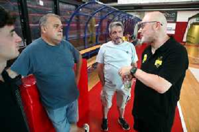 IMOLA 06 08 2025 PRIMO ALLENAMENTO VIRTUS IMOLA BASKET SERIE B1 NELLA FOTO ALLENATORE GIANLUIGI GALETTI VIRTUS IMOLA DIETRO PRESIDENTE STEFANO LORETI,VICE PRESIDENTE RENZO BALBO VICE PRESIDENTE E CARLO MARCHI DIRETTORE GENERALE ©SANNA - AGENZIA ALDO LIVERANI SAS
