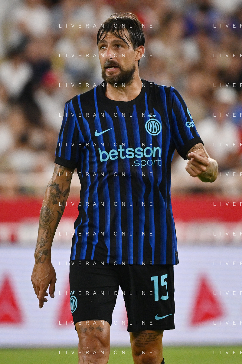 TVRG Monaco vs Inter nella foto Francesco Acerbi (Inter) Monaco (MC) 08-08-2025 Stade Louis II Monaco vs Inter - amichevole precampionato foto Roberto Garavaglia/Agenzia Aldo Liverani sas