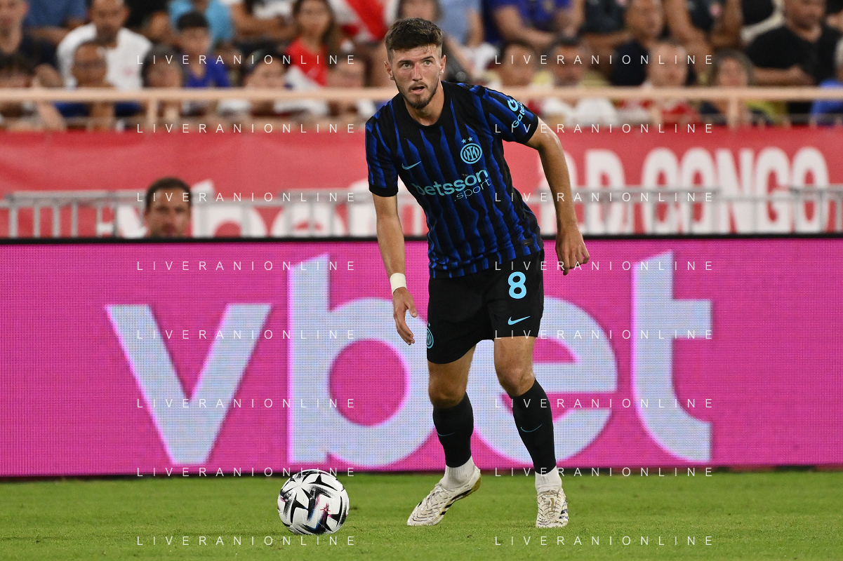 TVRG Monaco vs Inter nella foto Kristjan Asllani (Inter) Monaco (MC) 08-08-2025 Stade Louis II Monaco vs Inter - amichevole precampionato foto Roberto Garavaglia/Agenzia Aldo Liverani sas