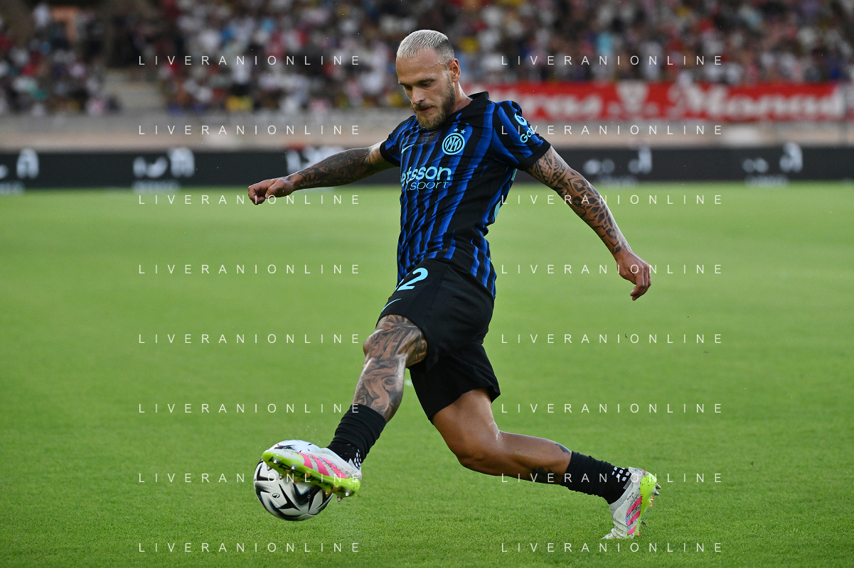 TVRG Monaco vs Inter nella foto Federico Dimarco (Inter) Monaco (MC) 08-08-2025 Stade Louis II Monaco vs Inter - amichevole precampionato foto Roberto Garavaglia/Agenzia Aldo Liverani sas