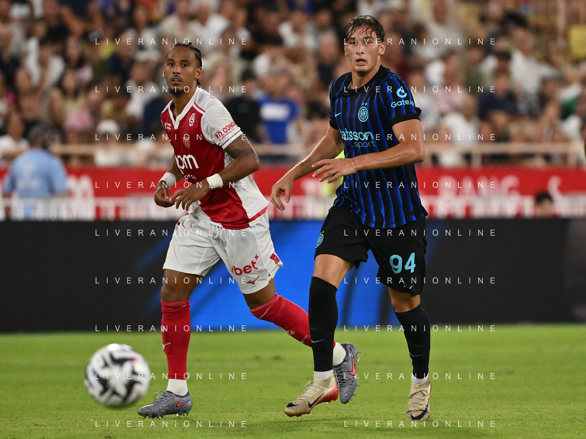 TVRG Monaco vs Inter nella foto Francesco Pio Esposito (Inter) e sulla SX Thilo Kehrer (Monaco) Monaco (MC) 08-08-2025 Stade Louis II Monaco vs Inter - amichevole precampionato foto Roberto Garavaglia/Agenzia Aldo Liverani sas