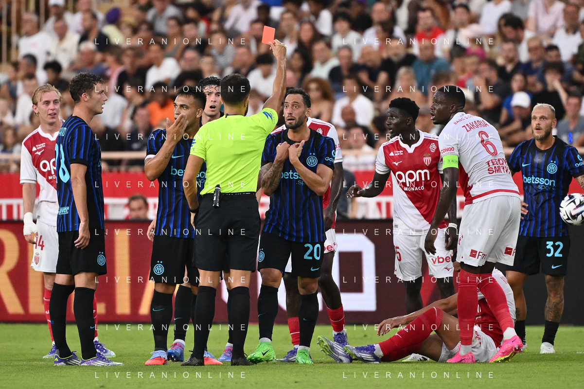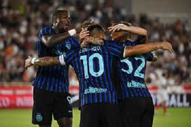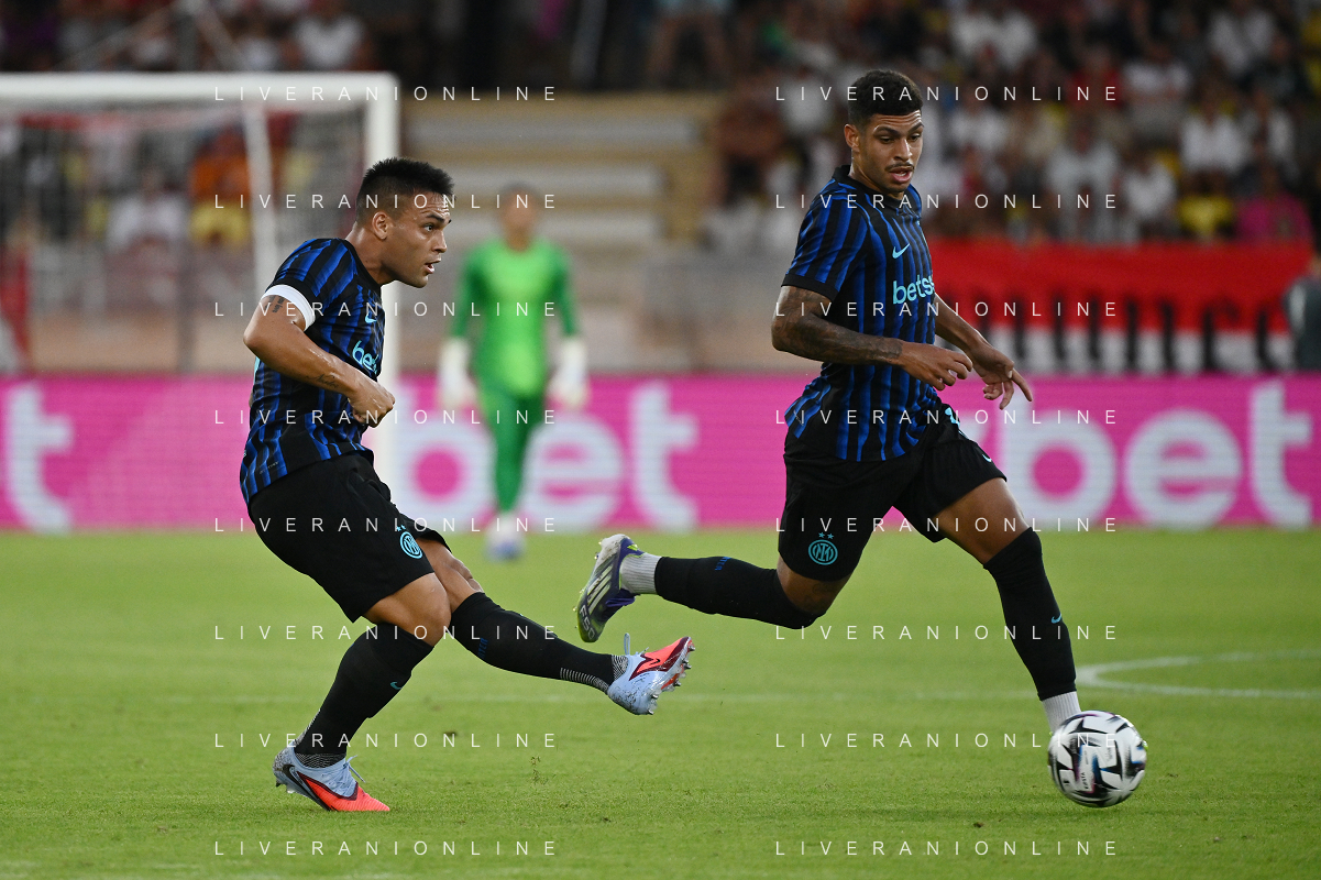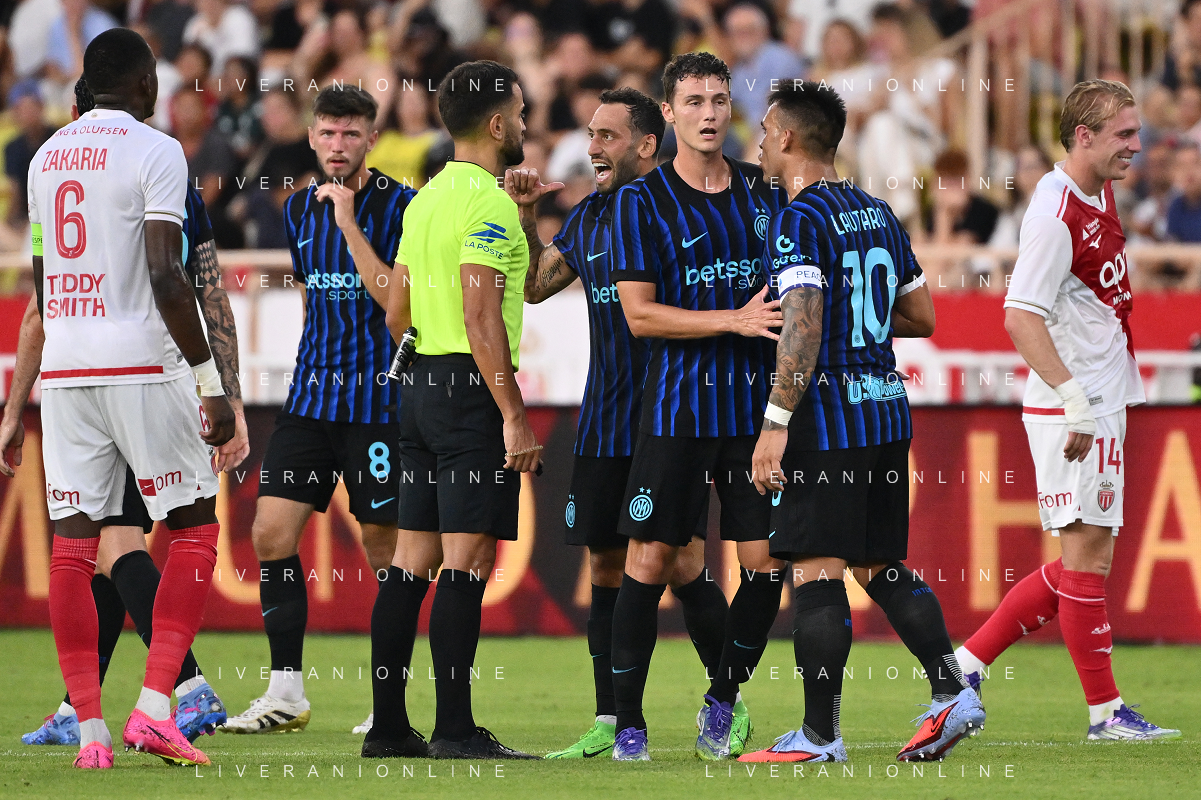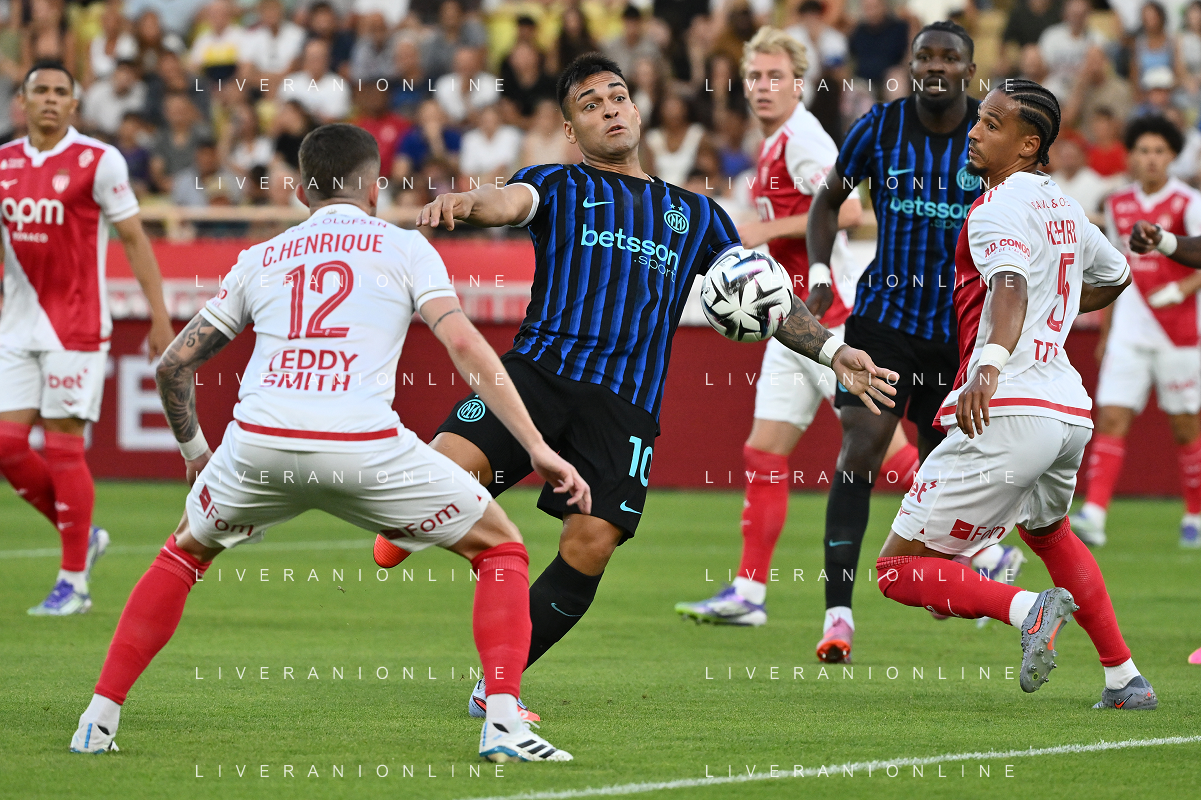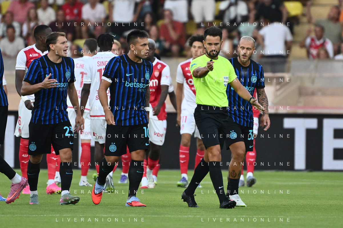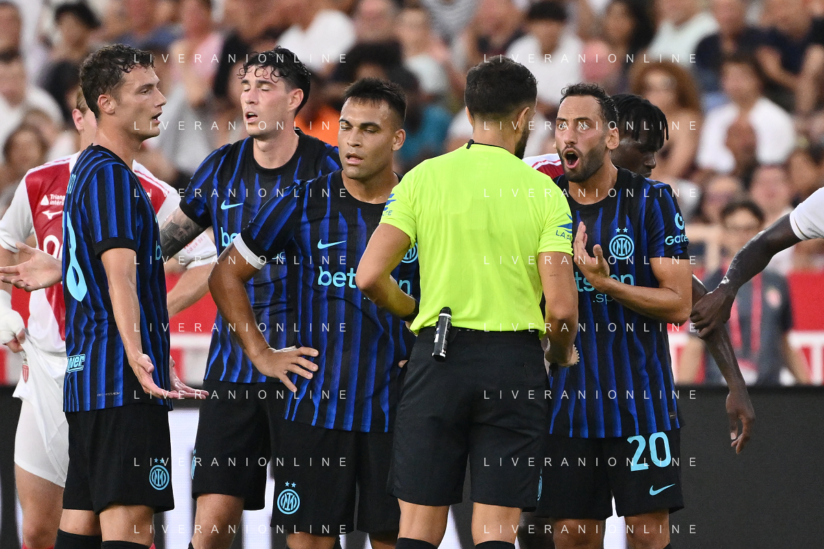 TVRG Monaco vs Inter nella foto formazione Inter, in piedi da SX Marcus Thuram (Inter), Luis Henrique de Lima (Inter), Francesco Acerbi (Inter), Benjamin Pavard (Inter), Yann Sommer (Inter) e Alessandro Bastoni (Inter); in basso da SX Petar Sucic (Inter), Federico Dimarco (Inter), Lautaro Martinez (Inter), Nicolò Barella (Inter) e Hakan Calhanoglu (Inter) Monaco (MC) 08-08-2025 Stade Louis II Monaco vs Inter - amichevole precampionato foto Roberto Garavaglia/Agenzia Aldo Liverani sas