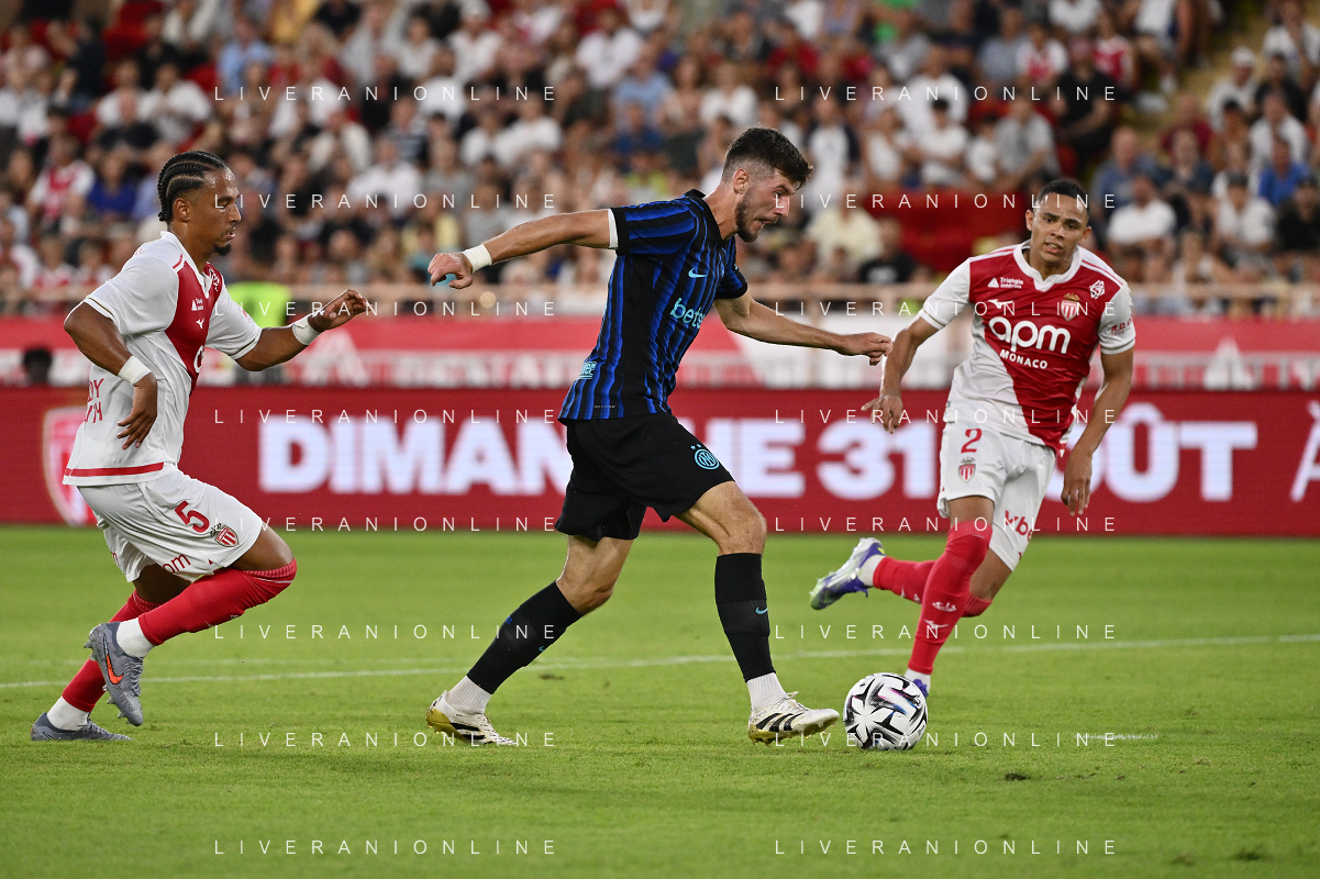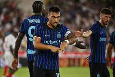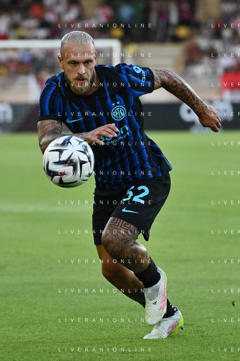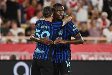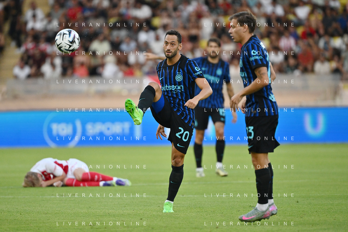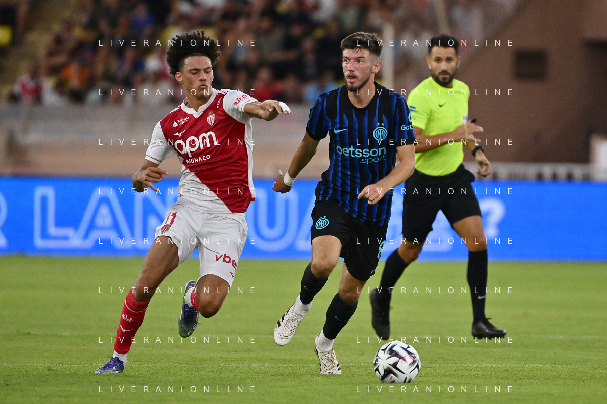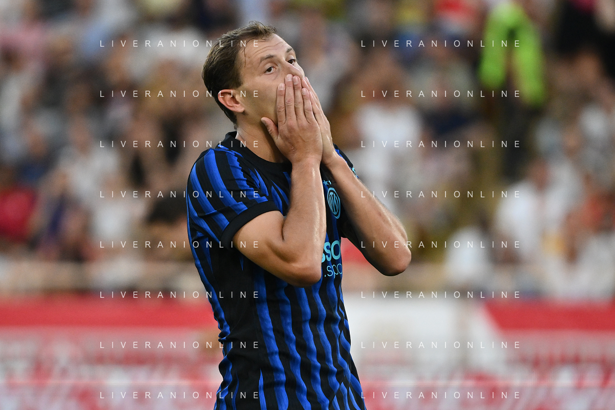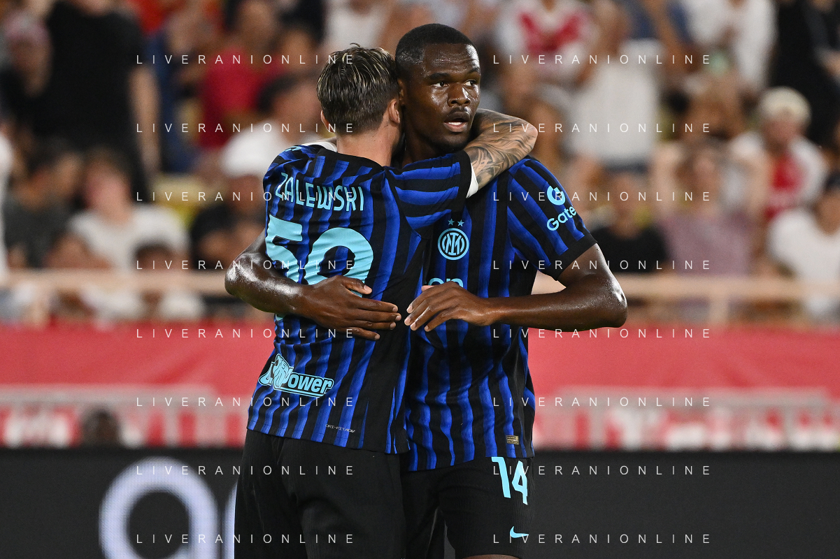 TVRG Monaco vs Inter nella foto formazione Inter, in piedi da SX Marcus Thuram (Inter), Luis Henrique de Lima (Inter), Francesco Acerbi (Inter), Benjamin Pavard (Inter), Yann Sommer (Inter) e Alessandro Bastoni (Inter); in basso da SX Petar Sucic (Inter), Federico Dimarco (Inter), Lautaro Martinez (Inter), Nicolò Barella (Inter) e Hakan Calhanoglu (Inter) Monaco (MC) 08-08-2025 Stade Louis II Monaco vs Inter - amichevole precampionato foto Roberto Garavaglia/Agenzia Aldo Liverani sas
