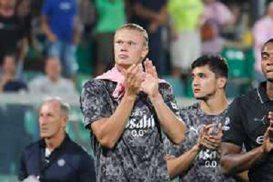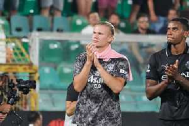Palermo FC vs Manchester City nella foto Erlng Haaland saluta i tffosi del Palermo a fine partita Palermo 09-08-2025 Stadio Renzo Barbera Anglo-Palermitan Trophy 2025 – incontro amichevole internazionale foto Federico Serra/Agenzia Aldo Liverani sas