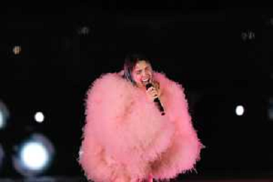 Italian singer Rose Villain performing live before the Anglo-Palermitan Trophy match between Palermo FC and Manchester City at Renzo Barbera Stadium