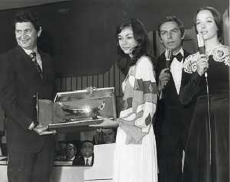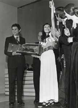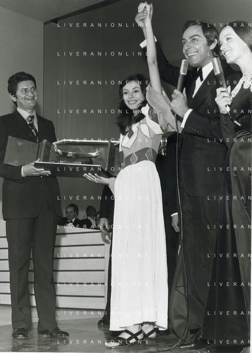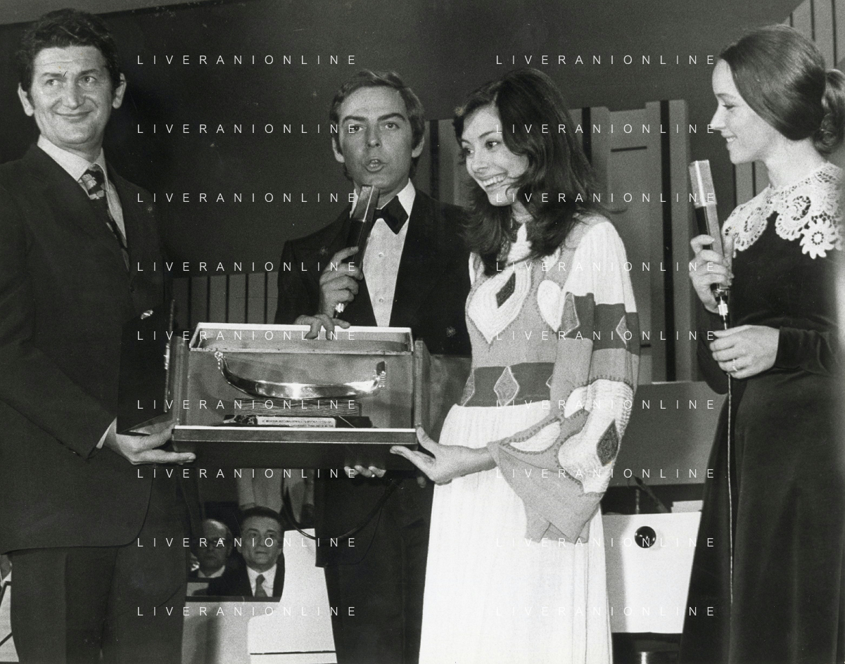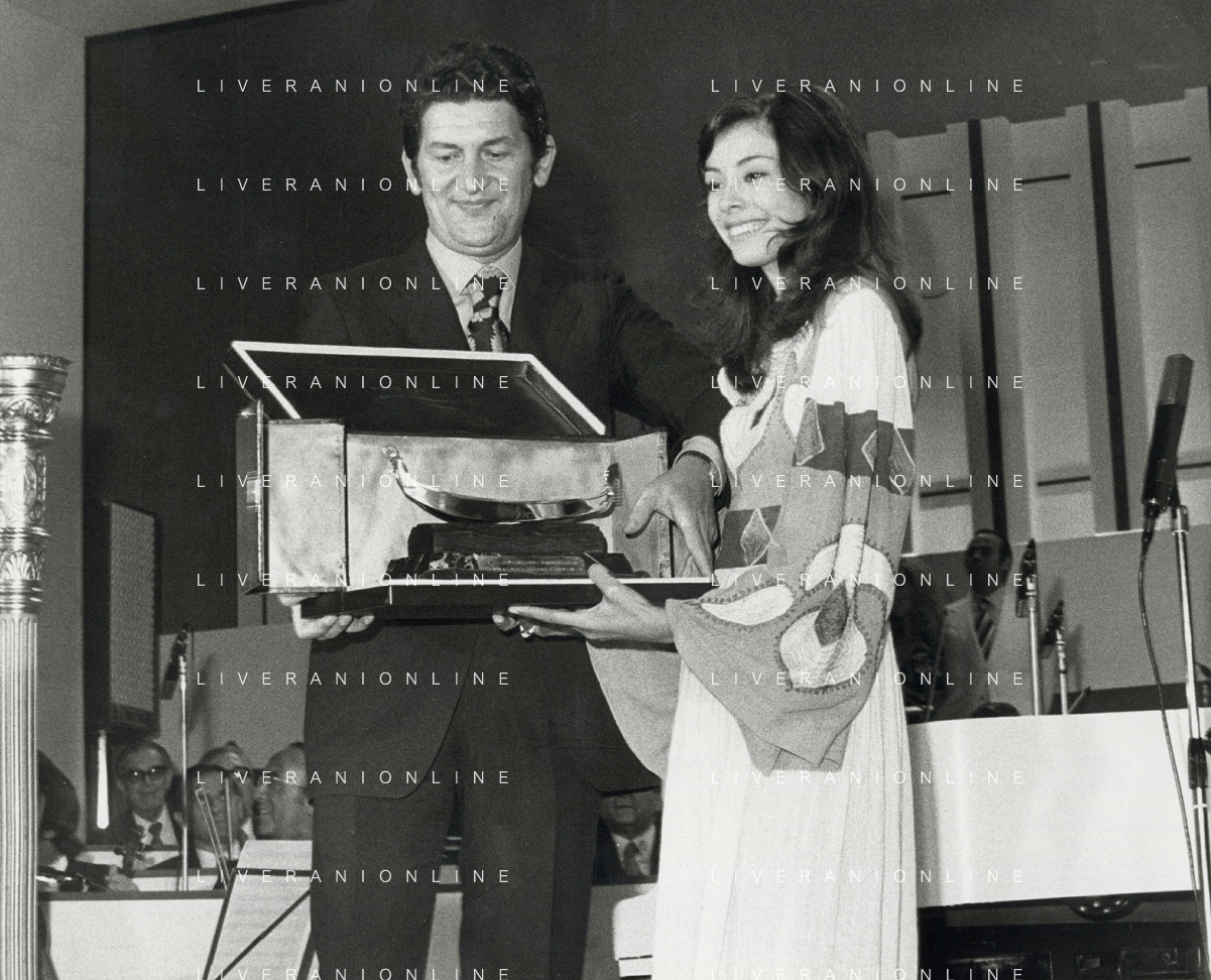ST-RETROSPETTIVA CARLA BISSI CANTANTE NELLA FOTO CARLA BISSI CON LA GONDOLA D'ARGENTO A VENEZIA NELL'ANNO 1972 AG ALDO LIVERANI SAS
