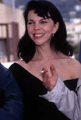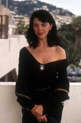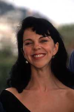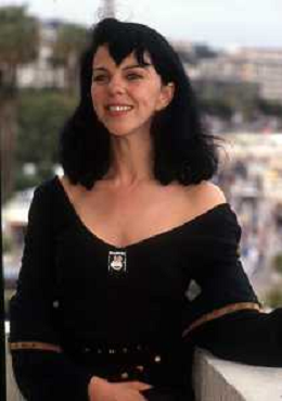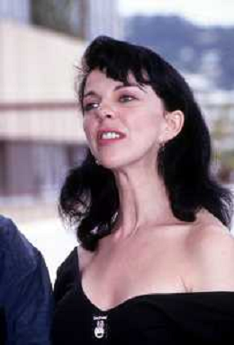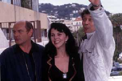 DIAP-RETROSPETTIVA CONSUELO DE HAVILAND ATTRICE NELLA FOTO CONSUELO DE HAVILAND A CANNES NELL'ANNO 1991 CON JEAN-FRANCOIS STEVENIN E PATRICK BOUCHITEY (FILM ‘LUNE FROIDE’) AG ALDO LIVERANI SAS