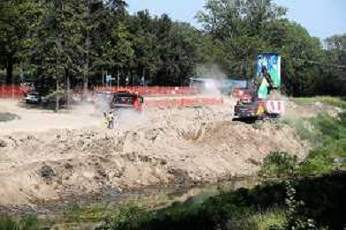 IMOLA 11 08 2025 LUNGOFIUME ALTEZZA AUTODROMO ENZO E DINO FERRARI. LAVORI DI messa in sicurezza del tratto urbano del Lungofiume, che si estende dal ponte della Tosa fino a quello della ferrovia CON I FONDI EUROPEI PNRR NELLA FOTO LINGOFIUME DI SANTERNO ALTEZZA AUTODROMO ©SANNA - AGENZIA ALDO LIVERANI SAS