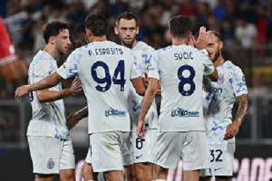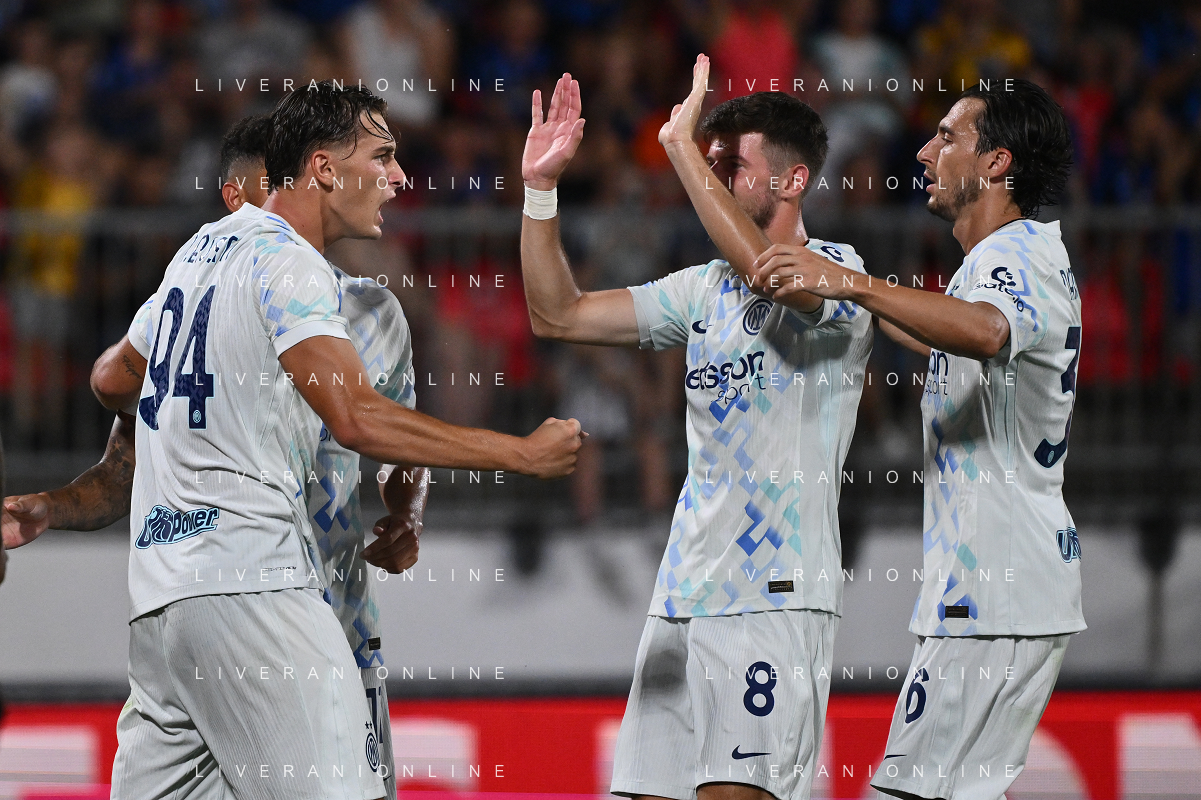 Monza vs Inter nella foto giocatori Inter esultanza dopo il gol del 2 a 1 Monza 12-08-2025 U-Power Stadium Monza vs Inter - amichevole precampionato foto Roberto Garavaglia/Agenzia Aldo Liverani sas- AGENZIA ALDO LIVERANI SAS