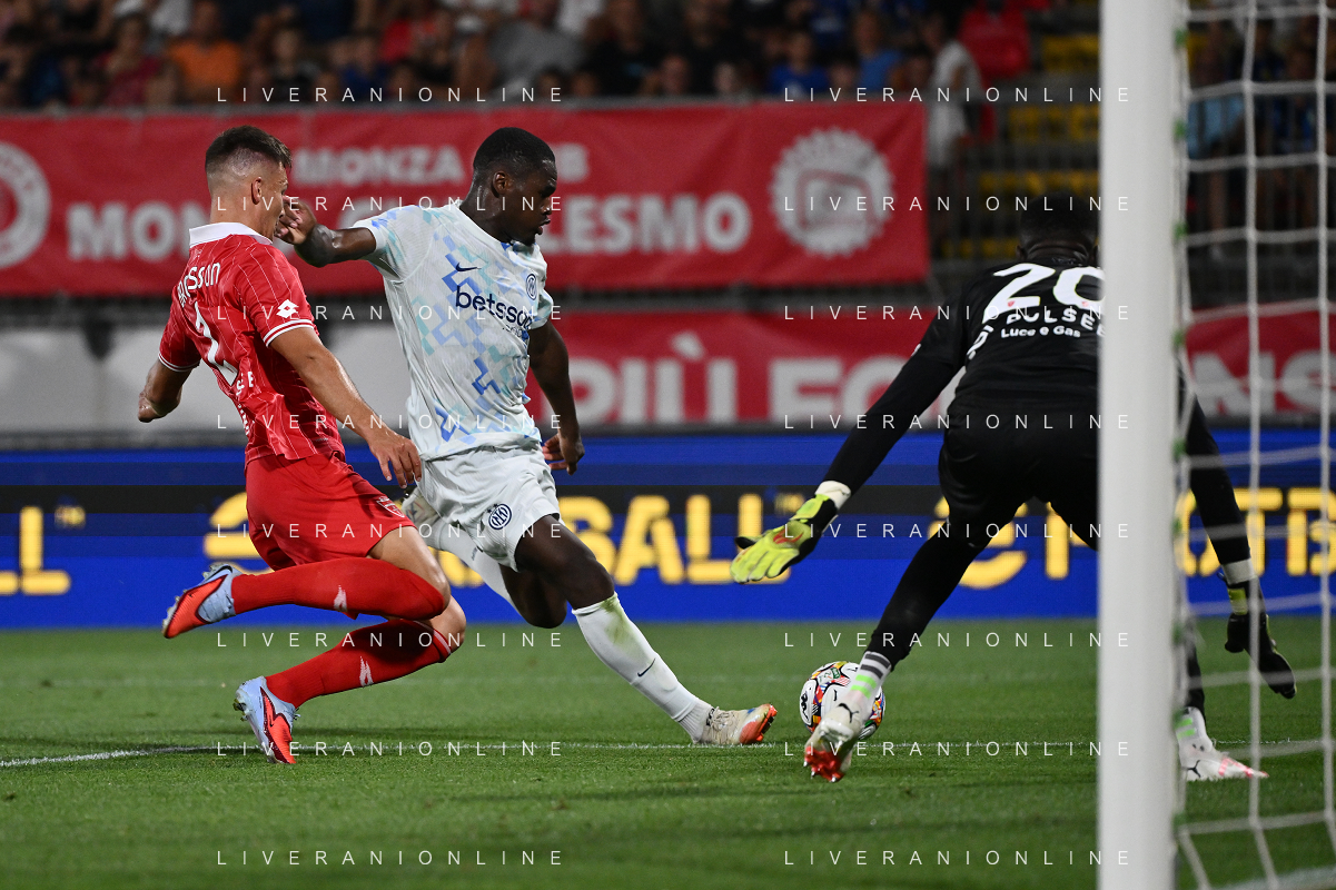 Monza vs Inter nella foto Patrick Ciurria (Monza) a DX segna il gol dell'1 a 0 Monza 12-08-2025 U-Power Stadium Monza vs Inter - amichevole precampionato foto Roberto Garavaglia/Agenzia Aldo Liverani sas- AGENZIA ALDO LIVERANI SAS