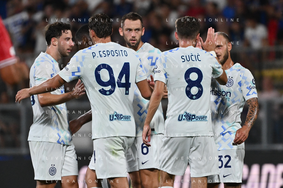 Monza vs Inter nella foto Francesco Pio Esposito (Inter) a SX esultanza dopo il gol del 2 a 1 Monza 12-08-2025 U-Power Stadium Monza vs Inter - amichevole precampionato foto Roberto Garavaglia/Agenzia Aldo Liverani sas- AGENZIA ALDO LIVERANI SAS