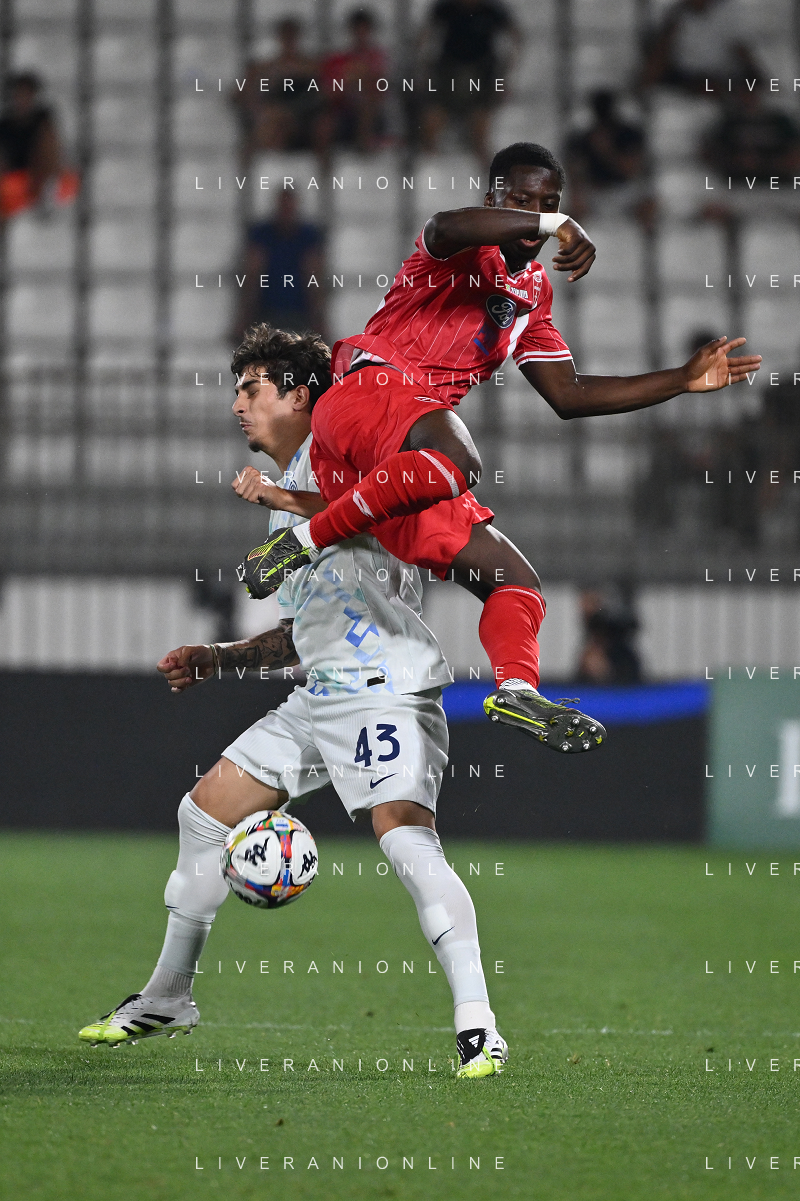 Monza vs Inter nella foto Matteo Cocchi (Inter) e Kevin Maussi Martins (Monza) Monza 12-08-2025 U-Power Stadium Monza vs Inter - amichevole precampionato foto Roberto Garavaglia/Agenzia Aldo Liverani sas- AGENZIA ALDO LIVERANI SAS