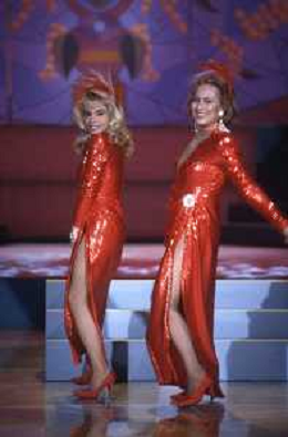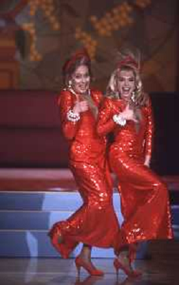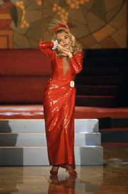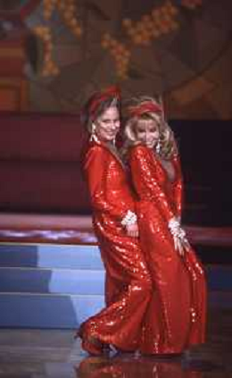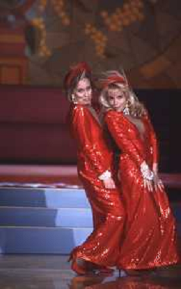 DIAP-RETROSPETTIVA MARIA GIOVANNA ELMI PRESENTATRICE TELEVISIVA NELLA FOTO MARIA GIOVANNA ELMI A MILANO NELL'ANNO 1990 NELLA TRASMISSIONE TELEVISIVA “SIMPATICISSIMA “ CON ROSANNA VAUDETTI AG ALDO LIVERANI SAS