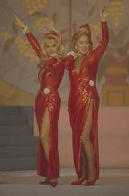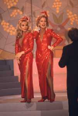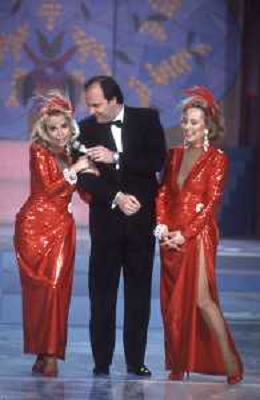 DIAP-RETROSPETTIVA MARIA GIOVANNA ELMI PRESENTATRICE TELEVISIVA NELLA FOTO MARIA GIOVANNA ELMI A MILANO NELL'ANNO 1990 NELLA TRASMISSIONE TELEVISIVA “SIMPATICISSIMA “ CON ROSANNA VAUDETTI E GERRY SCOTTI AG ALDO LIVERANI SAS