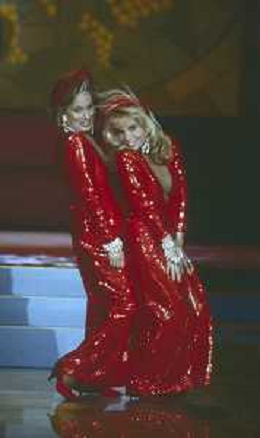 ARCHIVIO GIOVANNI LIVERANI NELLA FOTO MARIA GIOVANNA ELMI ANNUNCIATRICE TELEVISIVA CON ROSANNA VAUDETTI AG ALDO LIVERANI S A S