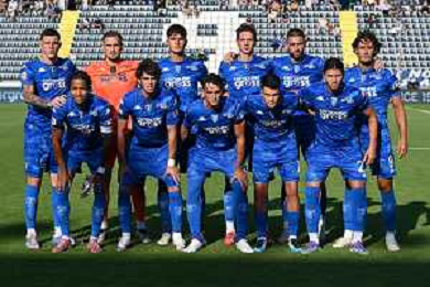 TVRG Empoli vs Reggiana nella foto formazione Empoli, in piedi da SX Franco Carboni (Empoli),Andrea Fulignati (Empoli), Gabriele Guarino (Empoli), Bogdan Popov (Empoli), Marco Curto (Empoli) e Luca Belardinelli (Empoli); in basso da SX Tyronne Ebuehi (Empoli), Stiven Shpendi (Empoli), Lorenzo Ignacchiti (Empoli), Rares Ilie (Empoli) e Brando Moruzzi (Empoli) Empoli (FI) 15-08-2025 Stadio Carlo Castellani - Computer Gross Arena Empoli vs Reggiana - trentaduesimi di finale Coppa Italia Frecciarossa foto Roberto Garavaglia/Agenzia Aldo Liverani sas