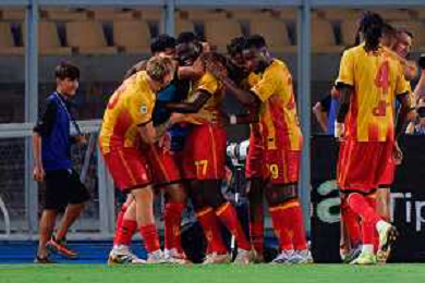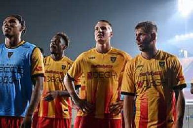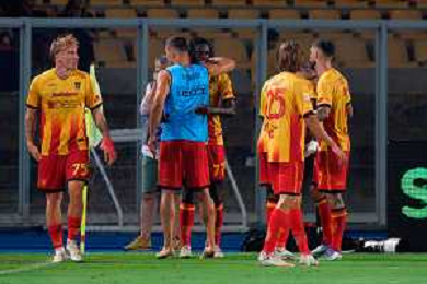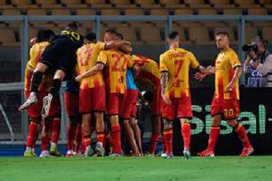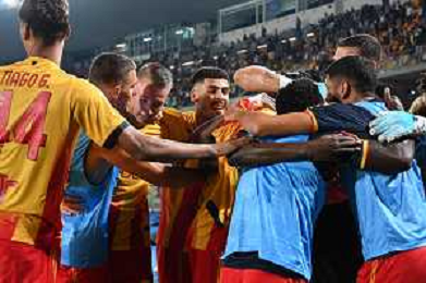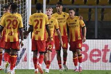 TVEM August 15, 2025 Lecce, Italy - US Lecce vs SS Juve Stabia - Coppa Italia round of 32 match 2025/26 - Via Del Mare Stadium. In the pic: Mohamed Kaba of US Lecce celebrates after scoring a goal with teammates ©TVEM Emmanuele Mastrodonato - AGENZIA ALDO LIVERANI SAS