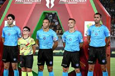 TVPG Lecce vs Juve Stabia nella foto la squadra arbitrale da sx Paolo Laudato (Assistente 1), Giuseppe Mucera (Arbitro), Francesco Cortese (Assistente 2) e Marco Di Bello (Quarta Ufficiale)Lecce (ITA) 15-08-2025 Stadio “E. Giardiniero” Via del Mare - Trentaduesimi di finale Coppa Italia Frecciarossa 2025/26 FOTO PASQUALE GOLIA-AG ALDO LIVERANI SAS