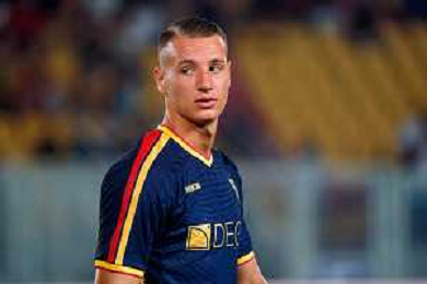 TVEM August 15, 2025 Lecce, Italy - US Lecce vs SS Juve Stabia - Coppa Italia round of 32 match 2025/26 - Via Del Mare Stadium. In the pic: Nikola Krstovic of US Lecce FOTO EMMANUELE MASTRODONATO-AG ALDO LIVERANI SAS