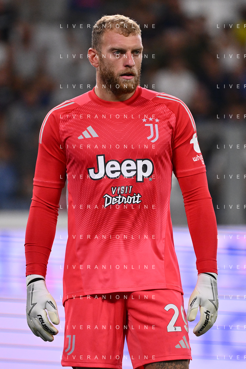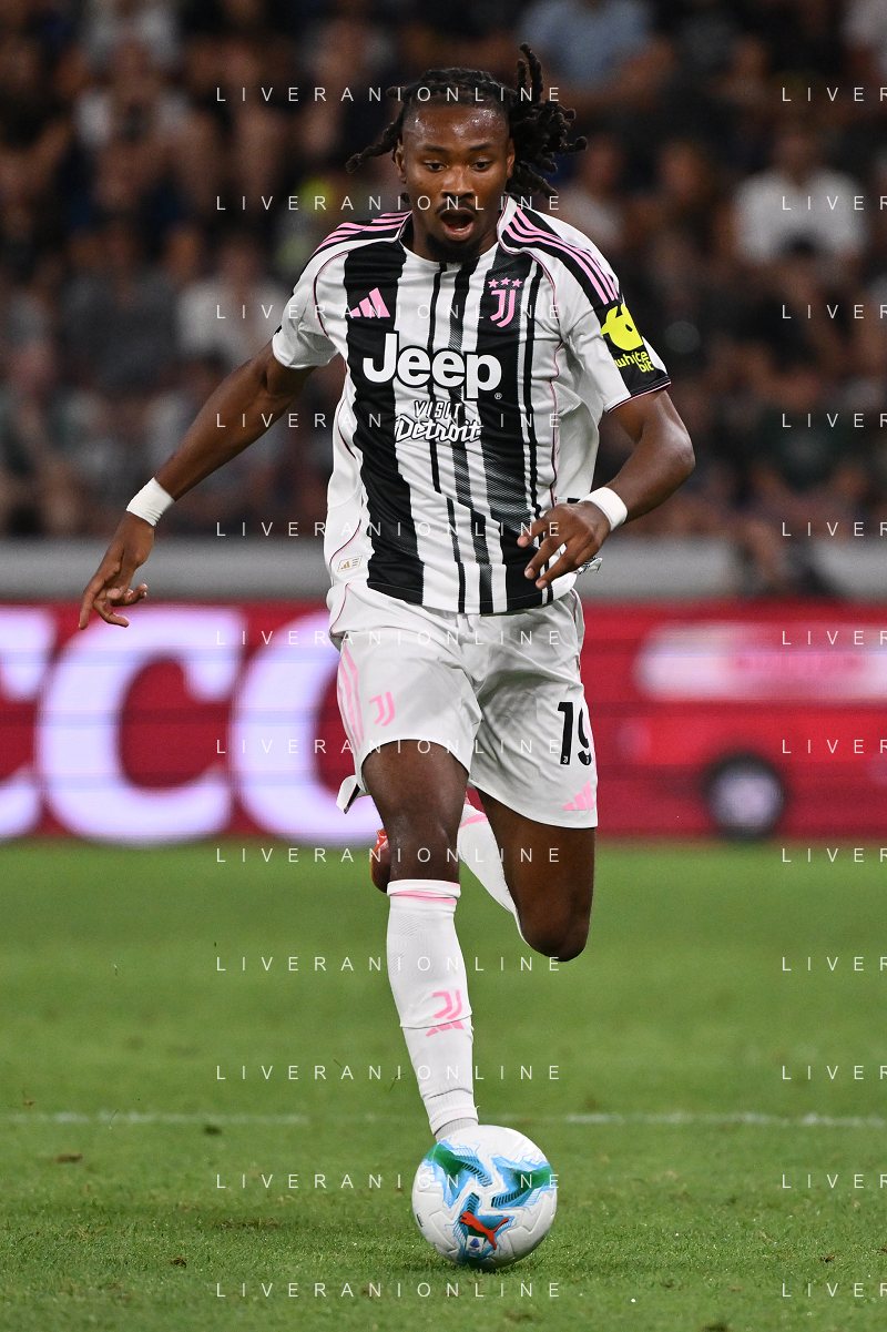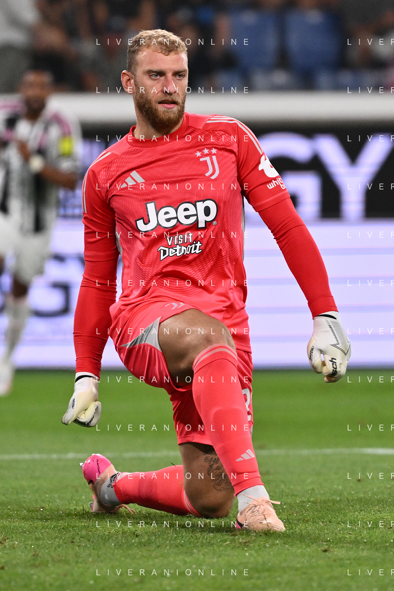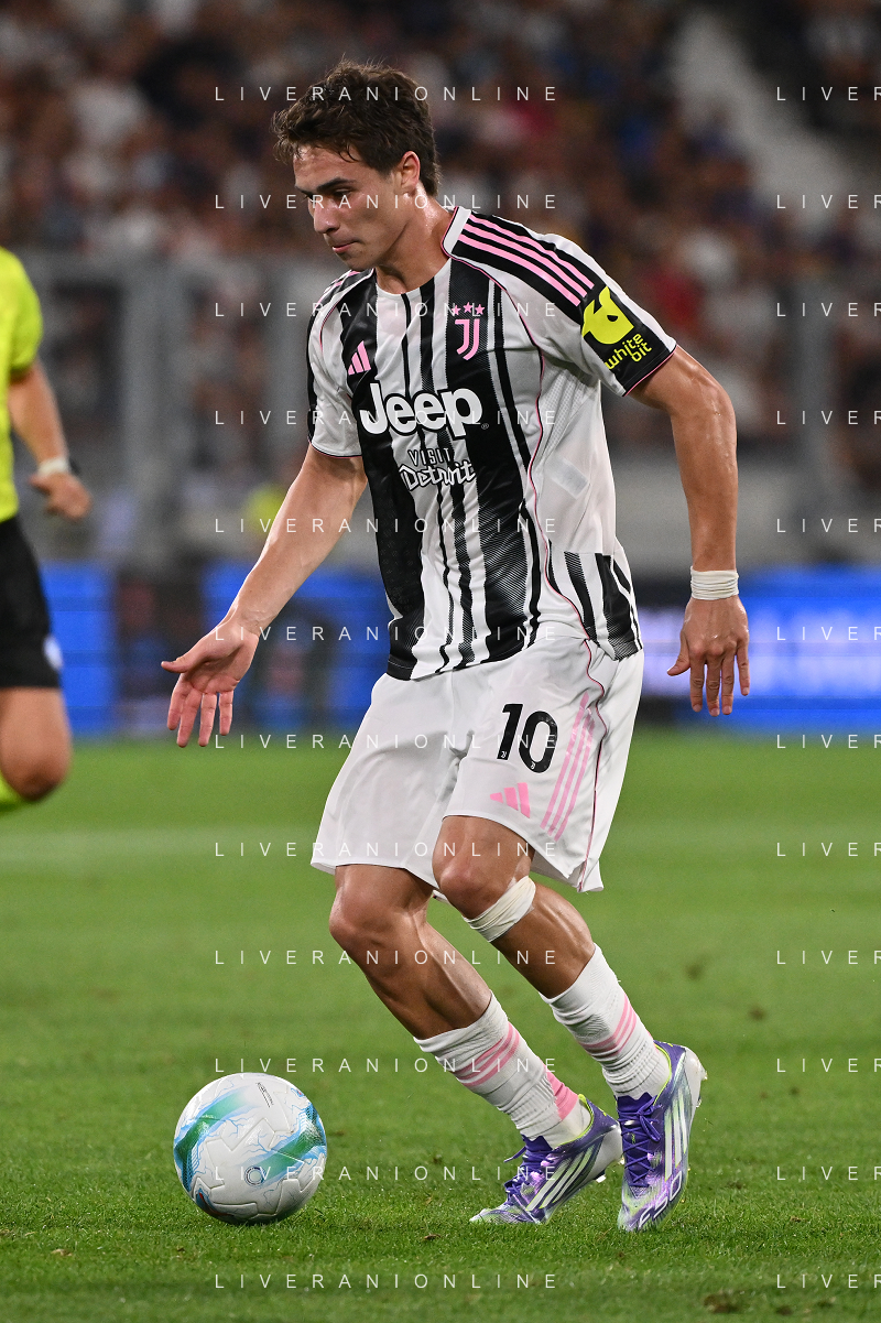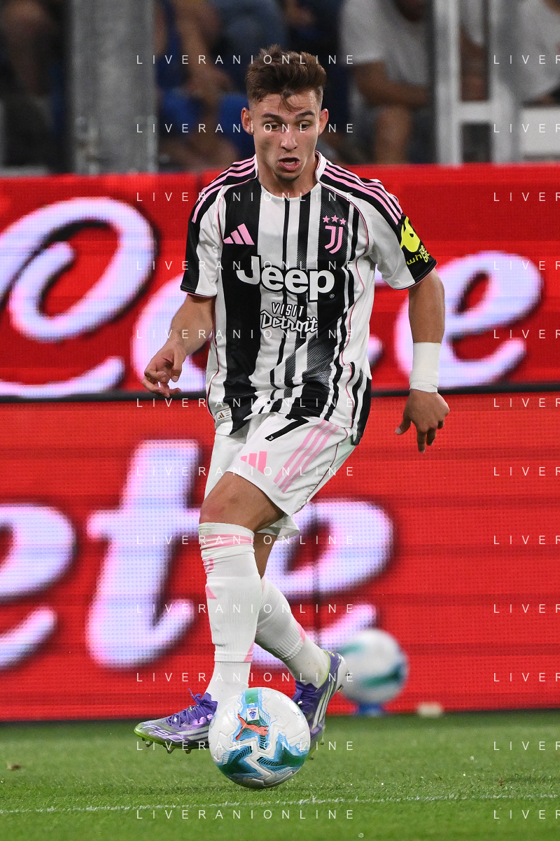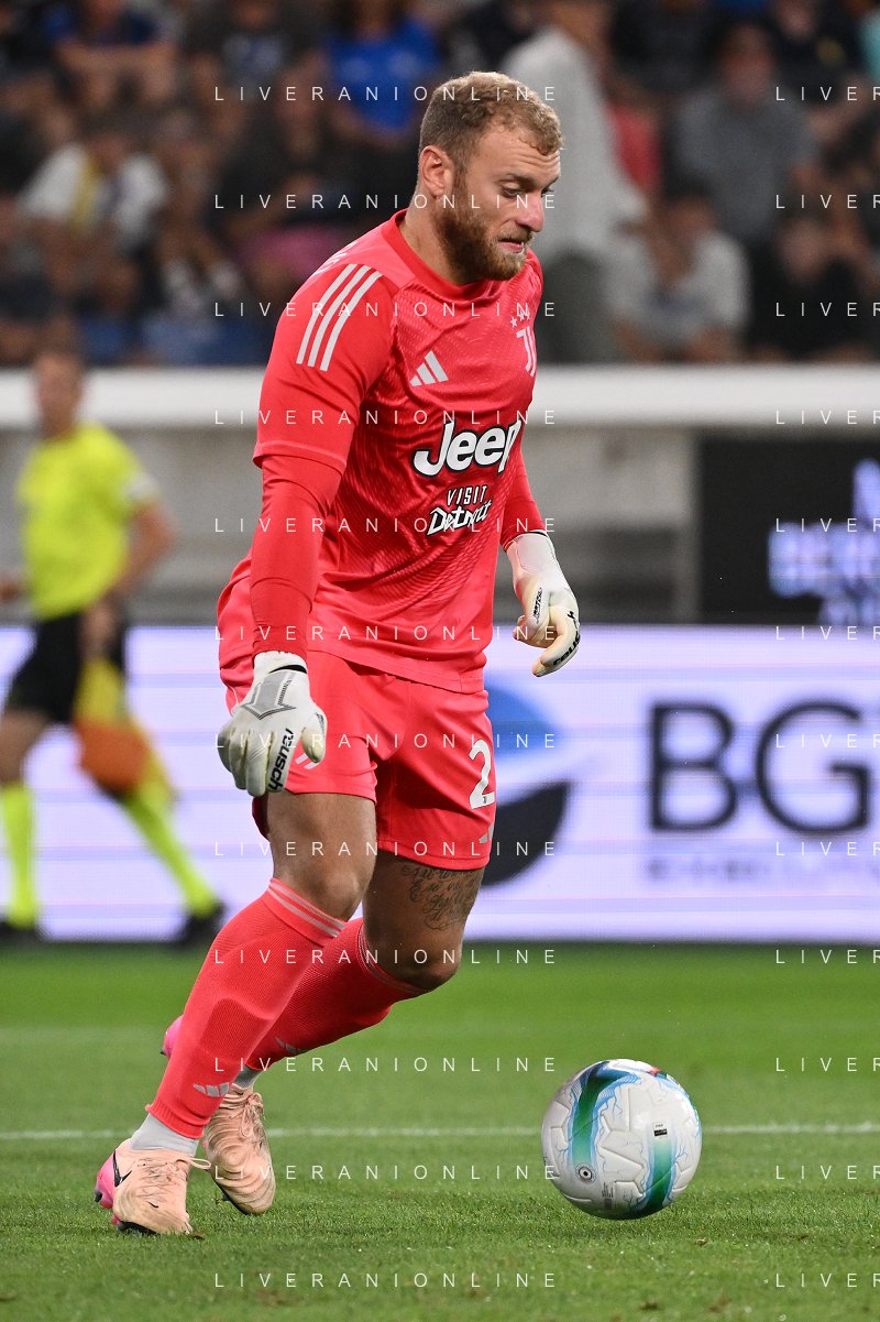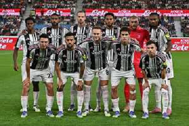Atalanta vs Juventus nella foto formazione Juventus, in piedi da SX Jonathan David (Juventus), Gleison Bremer (Juventus), Federico Gatti (Juventus), Lloyd Kelly (Juventus), Michele Di Gregorio (Juventus) e Khephren Thuram (Juventus); in basso da SX Andrea Cambiaso (Juventus), Nicolas Gonzalez (Juventus), Teun Koopmeiners (Juventus), Kenan Yildiz (Juventus) e Francisco Conceicao (Juventus) Bergamo 16-08-2025 Stadio di Bergamo Atalanta vs Juventus - amichevole precampionato foto Roberto Garavaglia/Agenzia Aldo Liverani sas