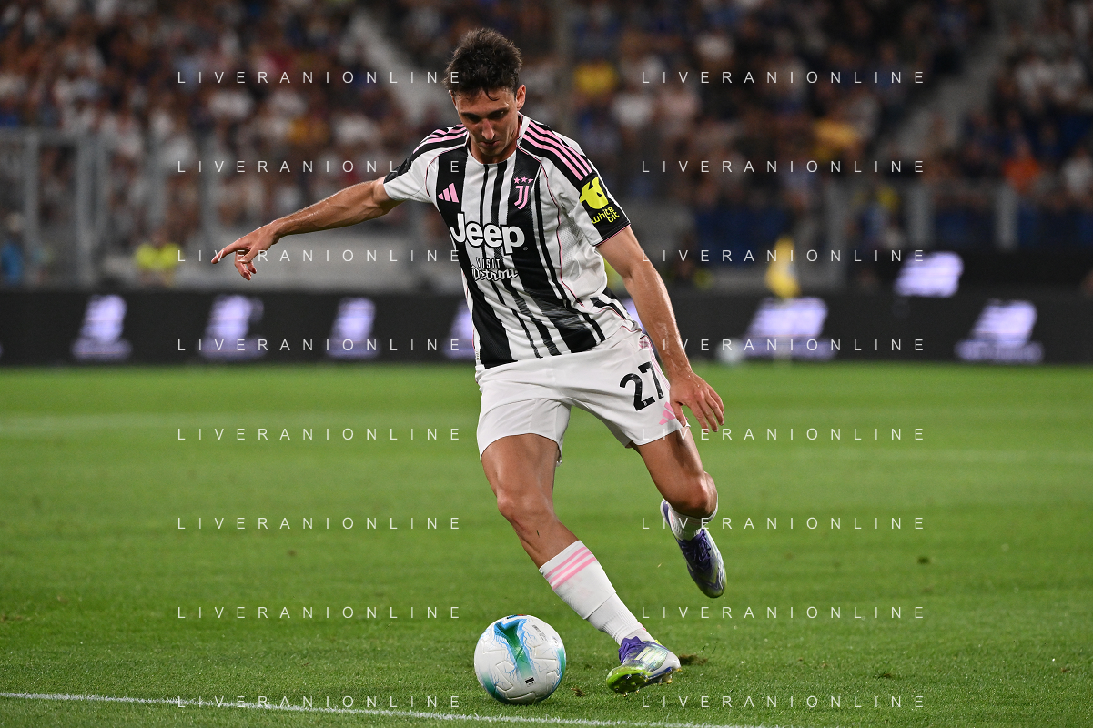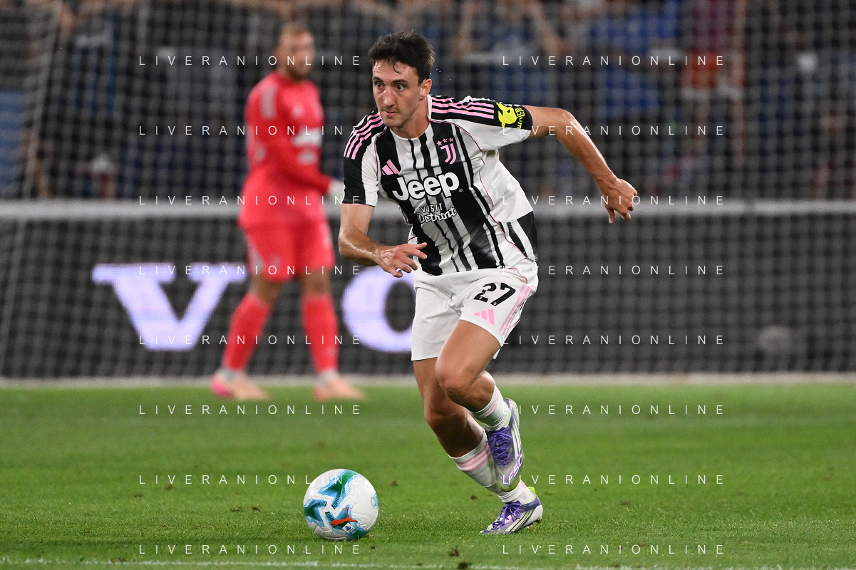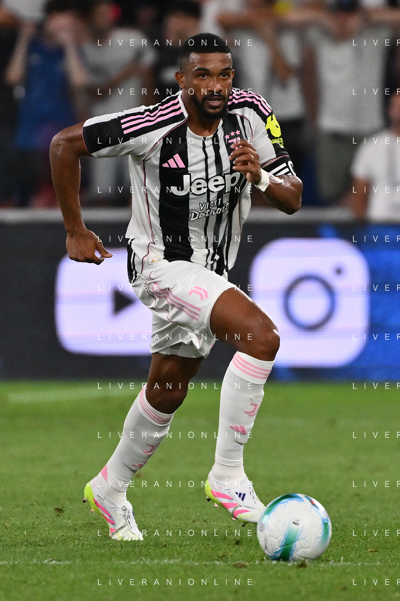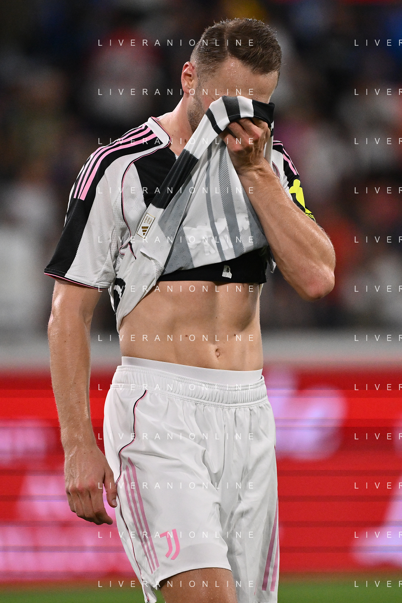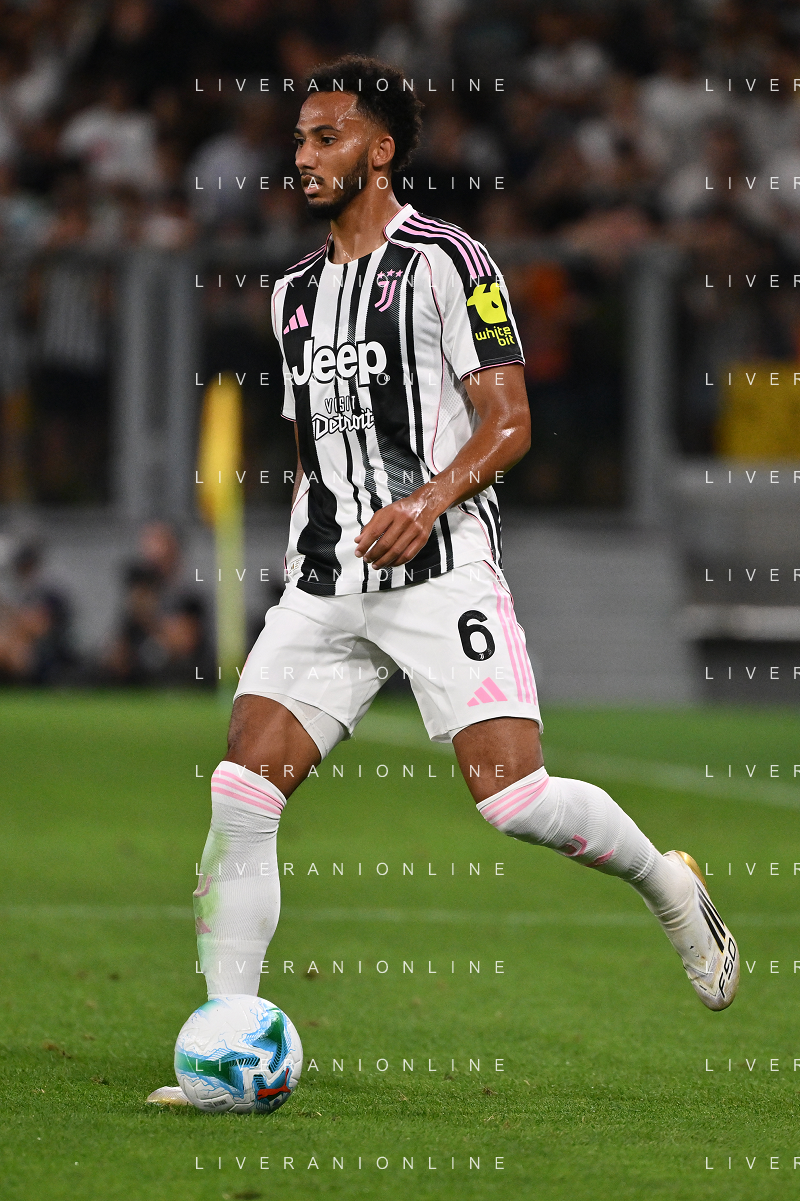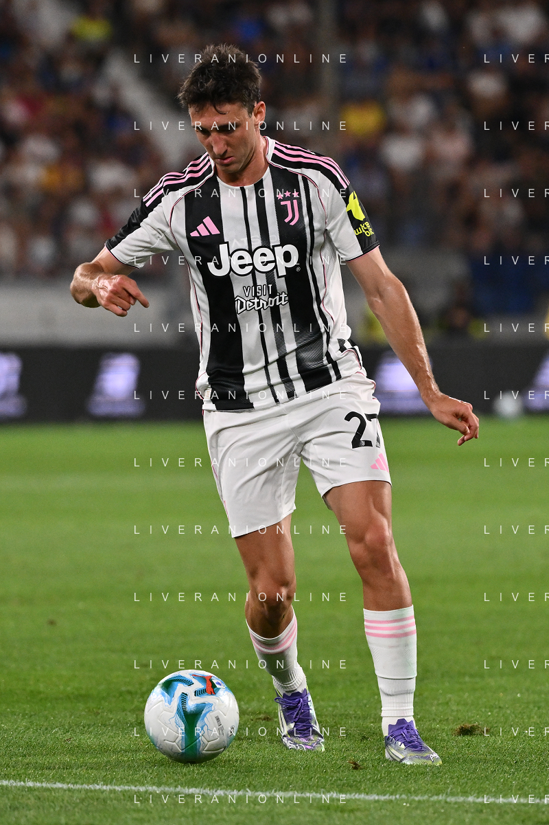 Atalanta vs Juventus nella foto formazione Juventus, in piedi da SX Jonathan David (Juventus), Gleison Bremer (Juventus), Federico Gatti (Juventus), Lloyd Kelly (Juventus), Michele Di Gregorio (Juventus) e Khephren Thuram (Juventus); in basso da SX Andrea Cambiaso (Juventus), Nicolas Gonzalez (Juventus), Teun Koopmeiners (Juventus), Kenan Yildiz (Juventus) e Francisco Conceicao (Juventus) Bergamo 16-08-2025 Stadio di Bergamo Atalanta vs Juventus - amichevole precampionato foto Roberto Garavaglia/Agenzia Aldo Liverani sas