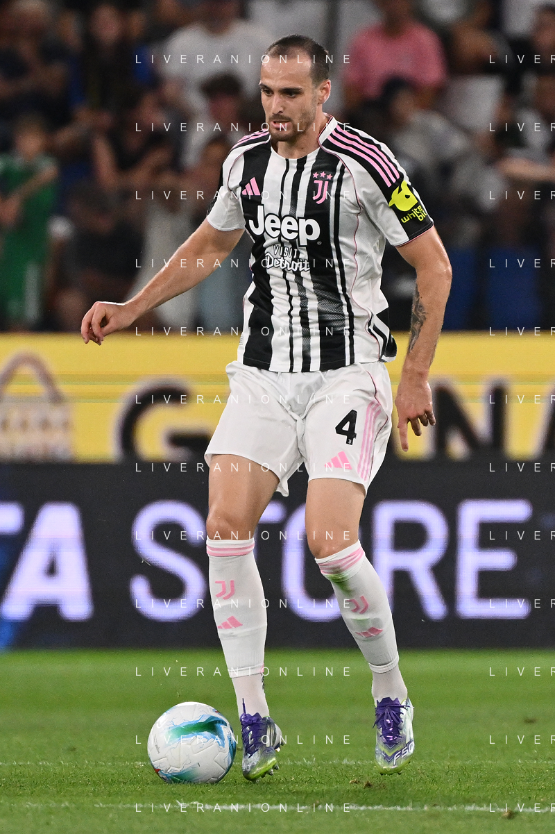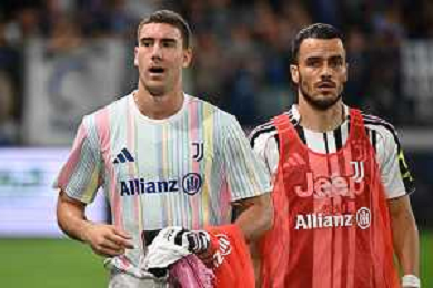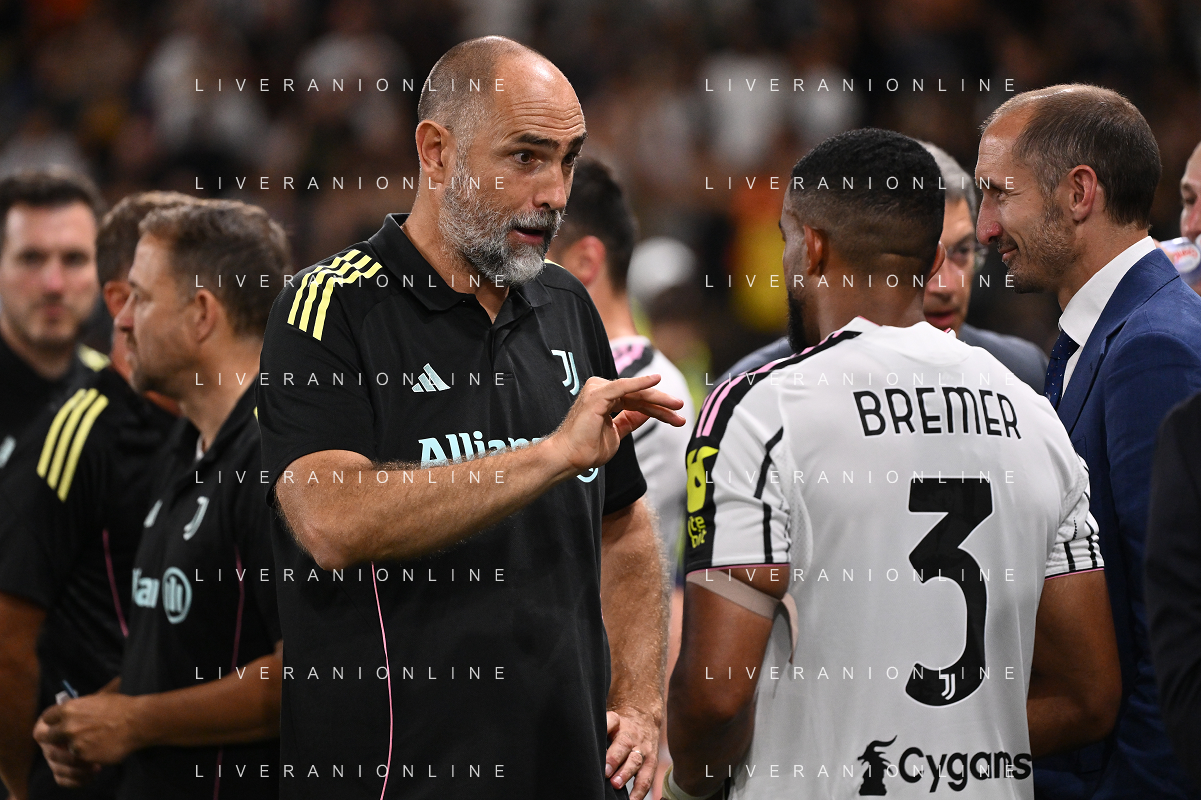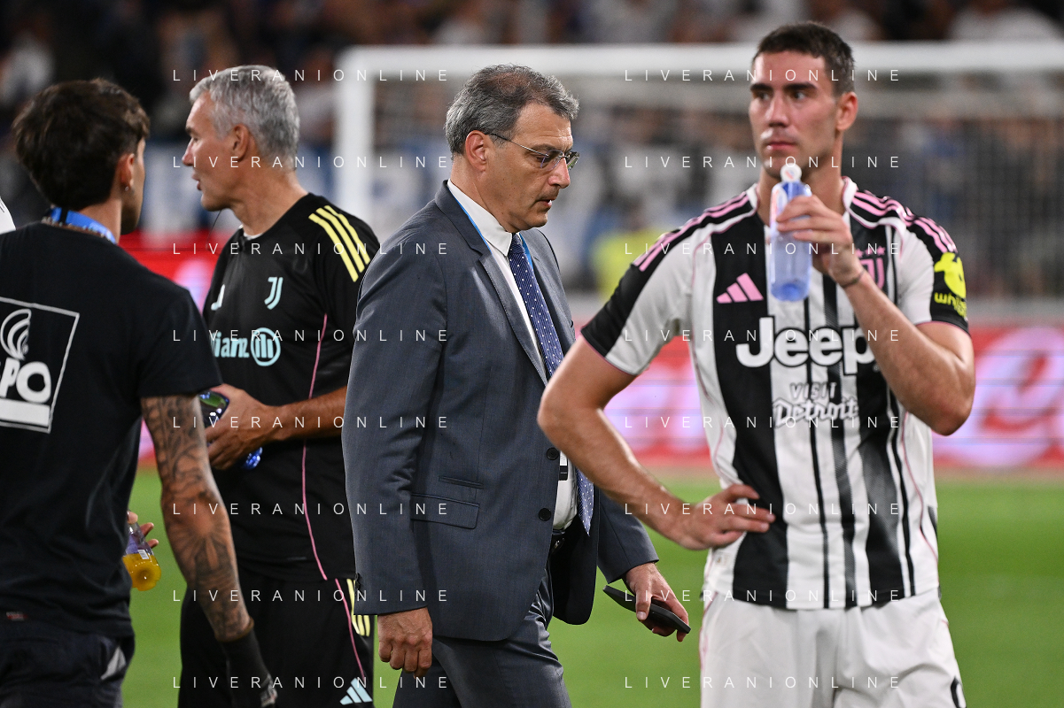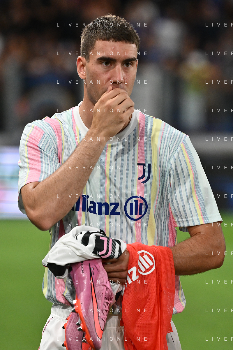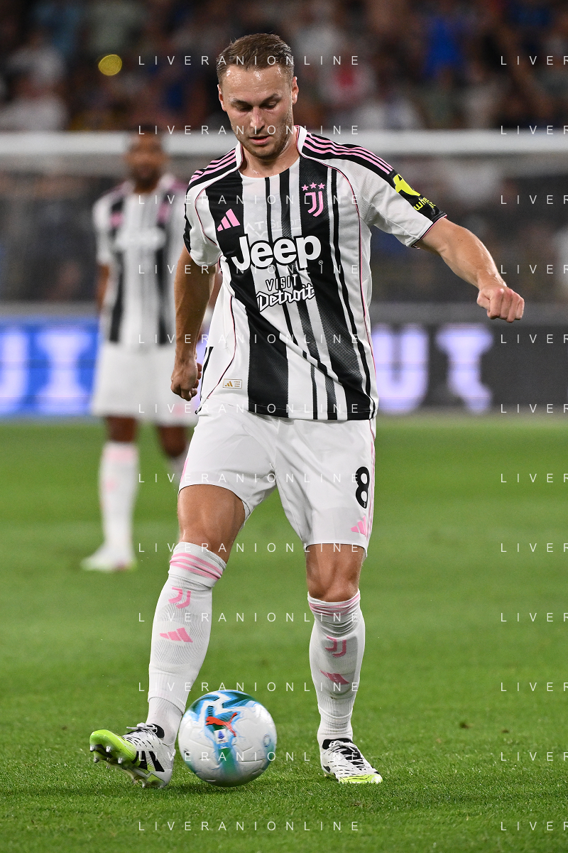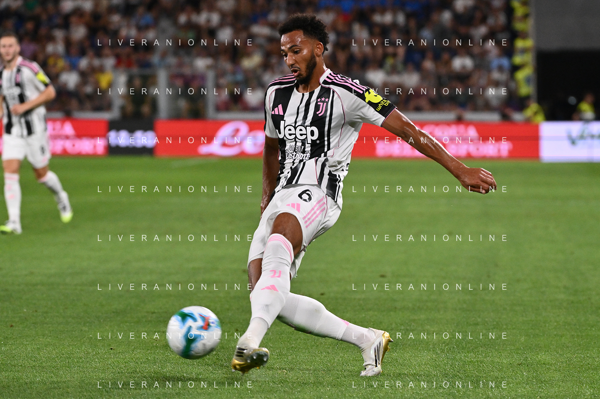 Atalanta vs Juventus nella foto formazione Juventus, in piedi da SX Jonathan David (Juventus), Gleison Bremer (Juventus), Federico Gatti (Juventus), Lloyd Kelly (Juventus), Michele Di Gregorio (Juventus) e Khephren Thuram (Juventus); in basso da SX Andrea Cambiaso (Juventus), Nicolas Gonzalez (Juventus), Teun Koopmeiners (Juventus), Kenan Yildiz (Juventus) e Francisco Conceicao (Juventus) Bergamo 16-08-2025 Stadio di Bergamo Atalanta vs Juventus - amichevole precampionato foto Roberto Garavaglia/Agenzia Aldo Liverani sas