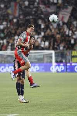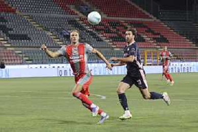 Manuel De Luca of US Cremonese competes for the ball with Mattia Bani of Palermo FC during US Cremonese vs Palermo FC, 32° leg of Coppa Italia Frecciarossa 2025-26 game at Giovanni Zini stadium in Cremona (CR), Italy, on Agust 16, 2025. (Photo by Davide Casentini)- AGENZIA ALDO LIVERANI SAS