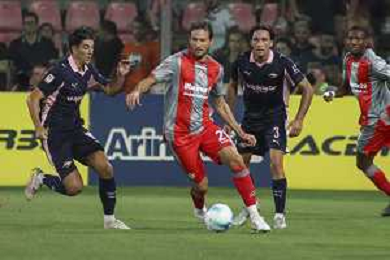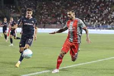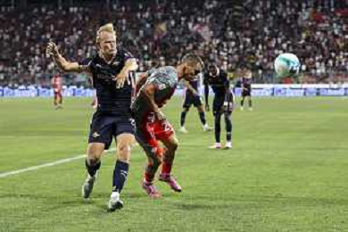 Franco Vazquez of US Cremonese battle for the ball during US Cremonese vs Palermo FC, 32° leg of Coppa Italia Frecciarossa 2025-26 game at Giovanni Zini stadium in Cremona (CR), Italy, on Agust 16, 2025. (Photo by Davide Casentini)- AGENZIA ALDO LIVERANI SAS