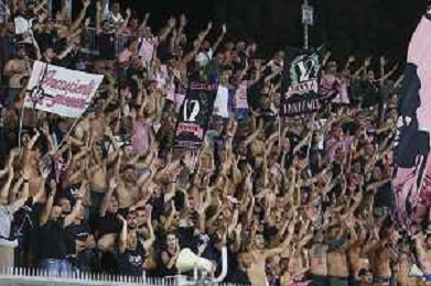 Palermo fans show their support during US Cremonese vs Palermo FC, 32° leg of Coppa Italia Frecciarossa 2025-26 game at Giovanni Zini stadium in Cremona (CR), Italy, on Agust 16, 2025. (Photo by Davide Casentini)- AGENZIA ALDO LIVERANI SAS