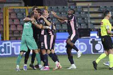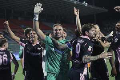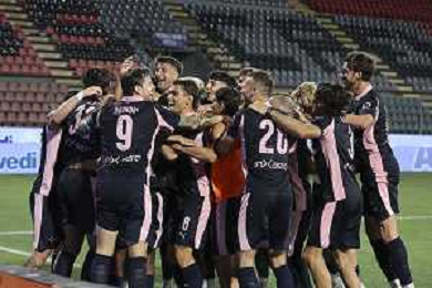 Palermo FC players celebrate the victory at the end of US Cremonese vs Palermo FC, 32° leg of Coppa Italia Frecciarossa 2025-26 game at Giovanni Zini stadium in Cremona (CR), Italy, on Agust 16, 2025. (Photo by Davide Casentini)- AGENZIA ALDO LIVERANI SAS