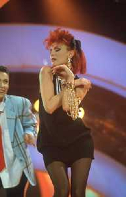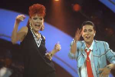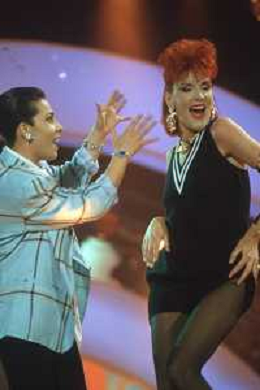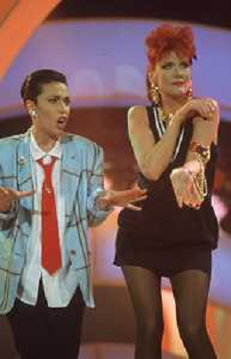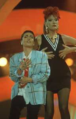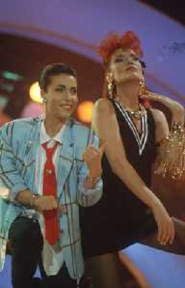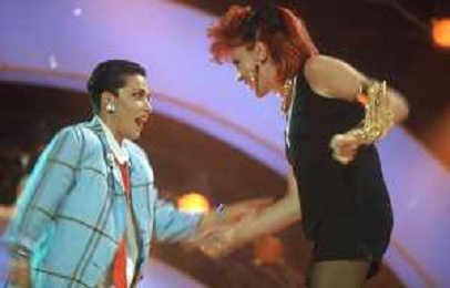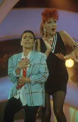 DIAP-RETROSPETTIVA DONATELLA RETTORE CANTANTE NELLA FOTO DONATELLA RETTORE CON GIUNI RUSSO A SAINT VINCENT NELL'ANNO 1987 AG ALDO LIVERANI SAS