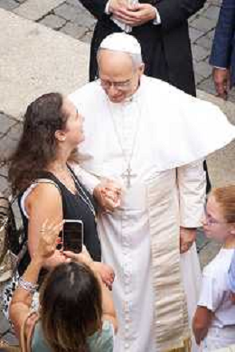Castel Gandolfo 17 Agosto 2025 Papa Leone XIV recita la preghiera dell’Angelus a Castel Gandolfo Nella foto: Papa Leone XIV Foto Credit: Andrea Bracaglia- AGENZIA ALDO LIVERANI SAS