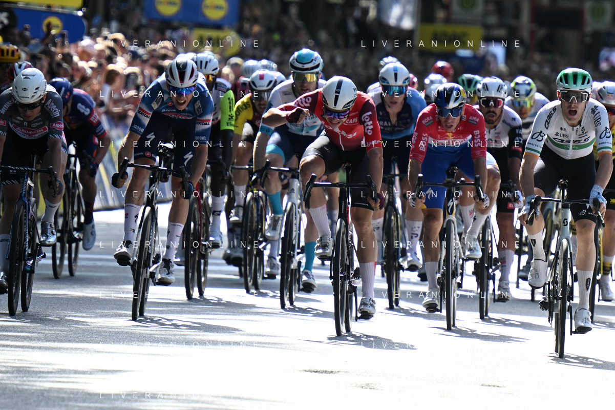 17-08-2025 Classica Di Amburgo; 2025, Q36.5; 2025, Visma - Lease A Bike; 2025, Lotto; Townsend, Rory; Van Aert, Wout; De Lie, Arnaud; Amburgo; ©SIROTTI - AGENZIA ALDO LIVERANI SAS