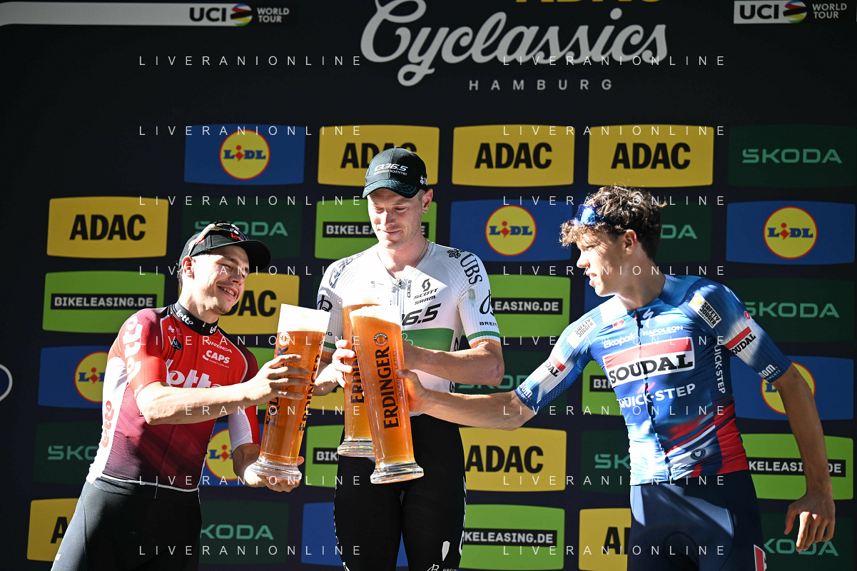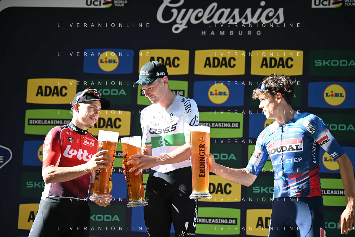 17-08-2025 Classica Di Amburgo; 2025, Q36.5; 2025, Lotto; 2025, Soudal - Quick Step; Townsend, Rory; De Lie, Arnaud; Magnier, Paul; Amburgo; ©SIROTTI - AGENZIA ALDO LIVERANI SAS