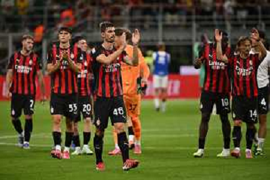 Milan vs Bari nella foto esultanza finale Milan Milano 17-08-2025 Stadio Giuseppe Meazza - San Siro Milan vs Bari Coppa Italia Frecciarossa - trentaduesimi di finale foto Roberto Garavaglia/Agenzia Aldo Liverani sas