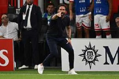 Milan vs Bari nella foto Fabio Caserta allenatore Bari Milano 17-08-2025 Stadio Giuseppe Meazza - San Siro Milan vs Bari Coppa Italia Frecciarossa - trentaduesimi di finale foto Roberto Garavaglia/Agenzia Aldo Liverani sas