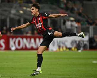 Milan vs Bari nella foto Noah Okafor (Milan) Milano 17-08-2025 Stadio Giuseppe Meazza - San Siro Milan vs Bari Coppa Italia Frecciarossa - trentaduesimi di finale foto Roberto Garavaglia/Agenzia Aldo Liverani sas
