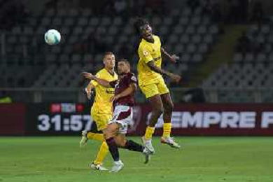Torino 18.08.25 Stadio Grande Torino @Manuela Viganti/Ag. Aldo Liverani sas Torino vs Modena Coppa Italia Frecciarossa Trentaduesimi di Finale Stagione 2025/2026 Nella foto: cyril ngonge e francesco zampano ©Viganti - AGENZIA ALDO LIVERANI SAS