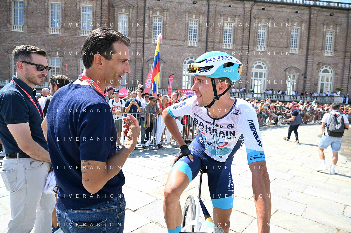 23-08-2025 Vuelta A Espana; Tappa 01 Venaria Reale - Novara; 2025, Bahrain - Victorious; Tiberi, Antonio; Bennati, Daniele; Venaria Reale; ©SIROTTI - AGENZIA ALDO LIVERANI SAS